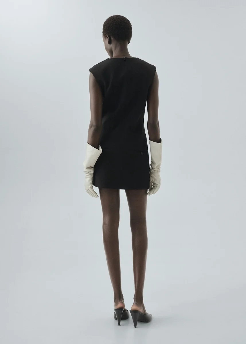 Modello corto. Design dritto. Scollo rotondo. Senza maniche. Spalline larghe. Tasca a filetto e bottone sul retro. Dettaglio cuciture. Chiusura con cerniera sul retro. Fodera interna. Collezione Selection.