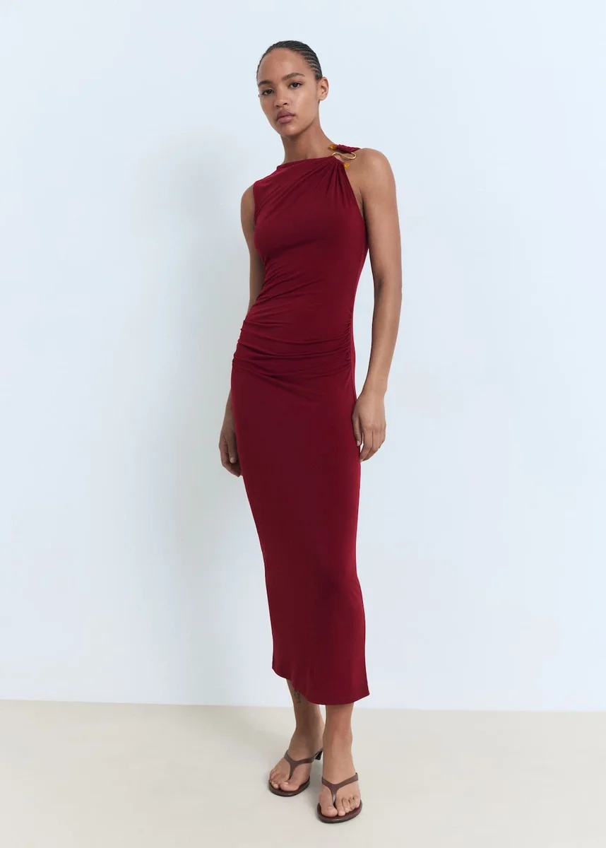 Abito drappeggiato con dettaglio gioiello
