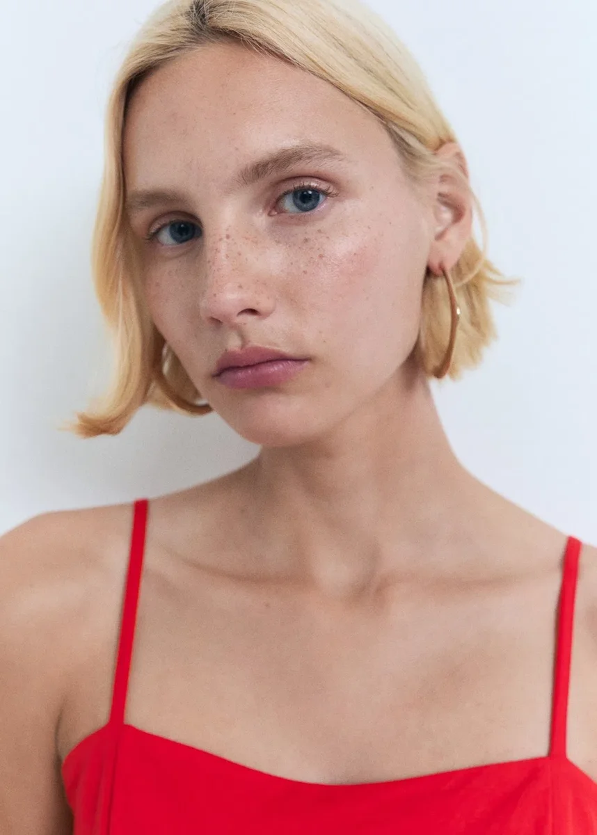 Modello midi. Taglio dritto. Scollo basso. Senza maniche. Spalline sottili. Chiusura con nodo sul retro. Questo capo fa parte della nostra collezione casual, pensata per accompagnarti con stile nella tua vita quotidiana