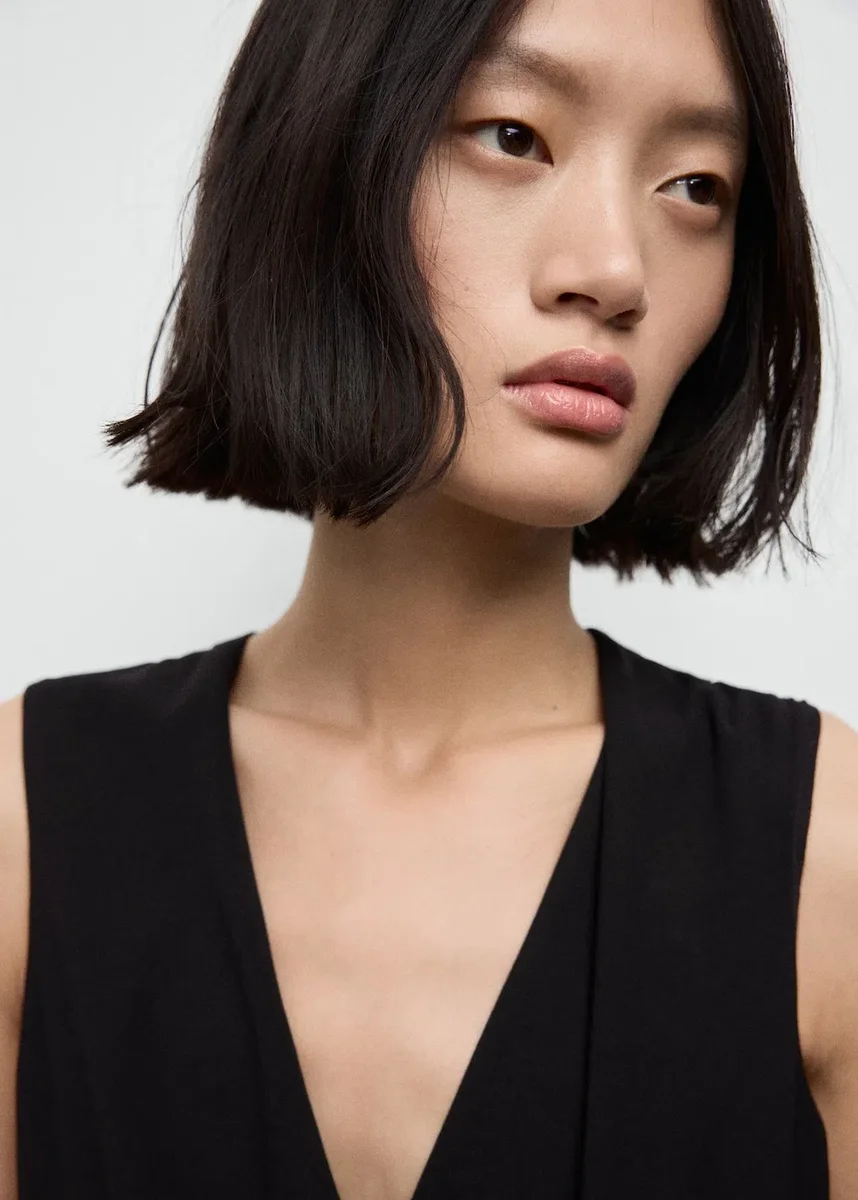 Modello dritto. Modello corto. Modello avvolgente. Scollo a V. Senza maniche. Spalline larghe. Chiusura con fibbia. Due tasche laterali. Fodera interna. Il colore bordeaux è un’esclusiva online. Black Friday
