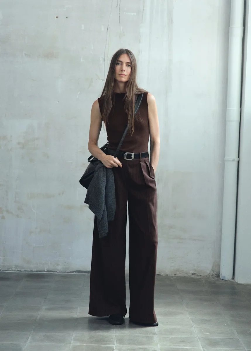 Modello lungo. Modello dritto. Modello gessato. Modello combinato. Collo alto. Senza maniche. Spalline larghe. Passanti per cintura. Chiusura con cerniera sul retro. Il colore marrone è un’esclusiva online.