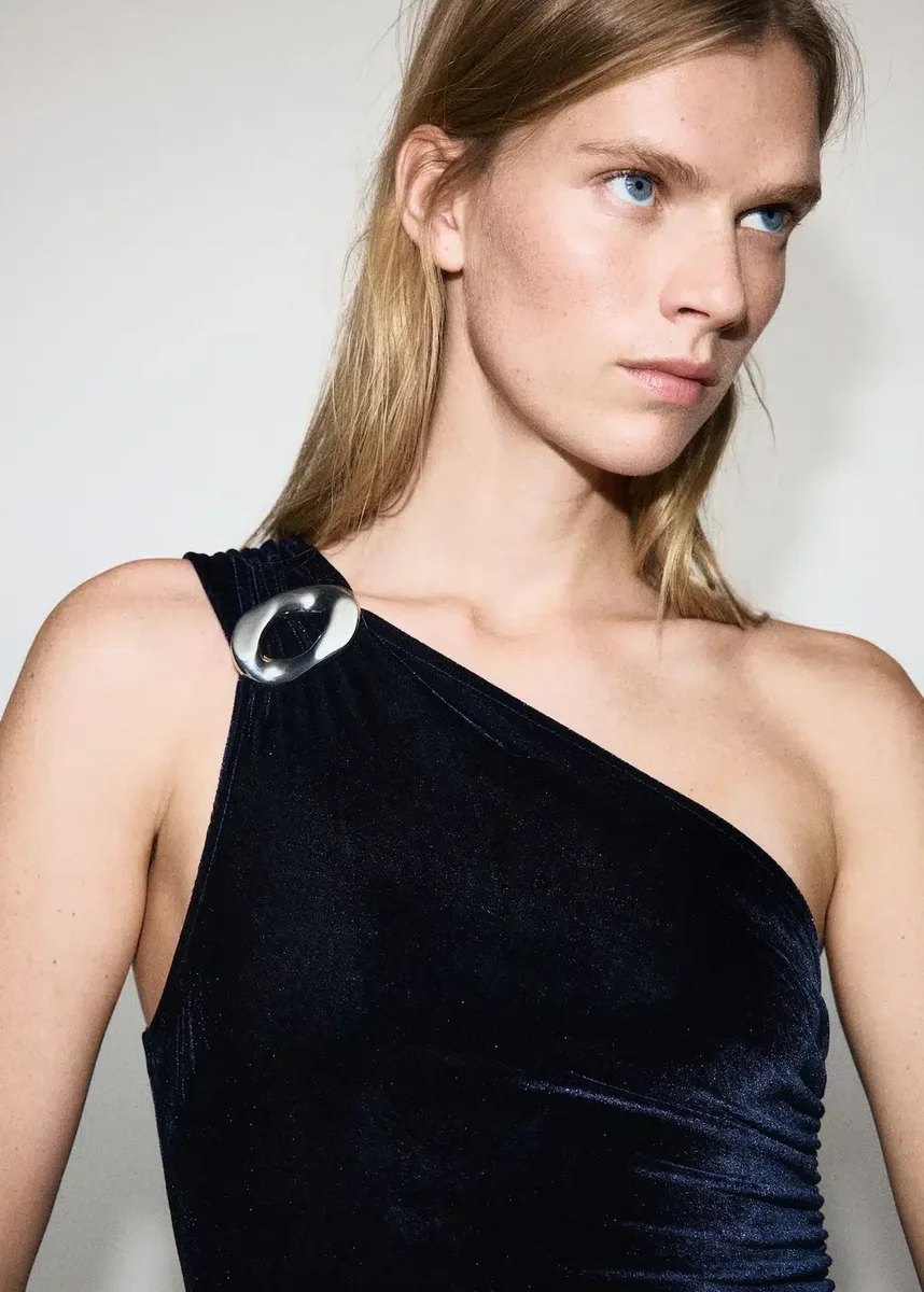Tessuto in velluto. Design lungo. Design aderente. Scollo asimmetrico. Dettagli metallici. Volant laterali. Chiusura con zip laterale. Questo capo fa parte della nostra collezione party ed eventi, pensata per valorizzare il tuo look nelle occasioni speciali.