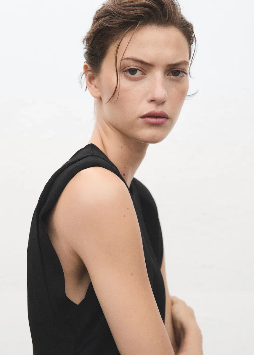 Modello lungo. Taglio dritto. Scollo rotondo. Senza maniche. Spalline imbottite. Chiusura con zip sul retro. Fodera interna. Il colore nero è un’esclusiva online.