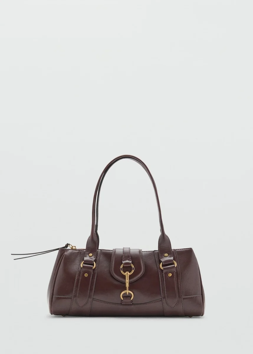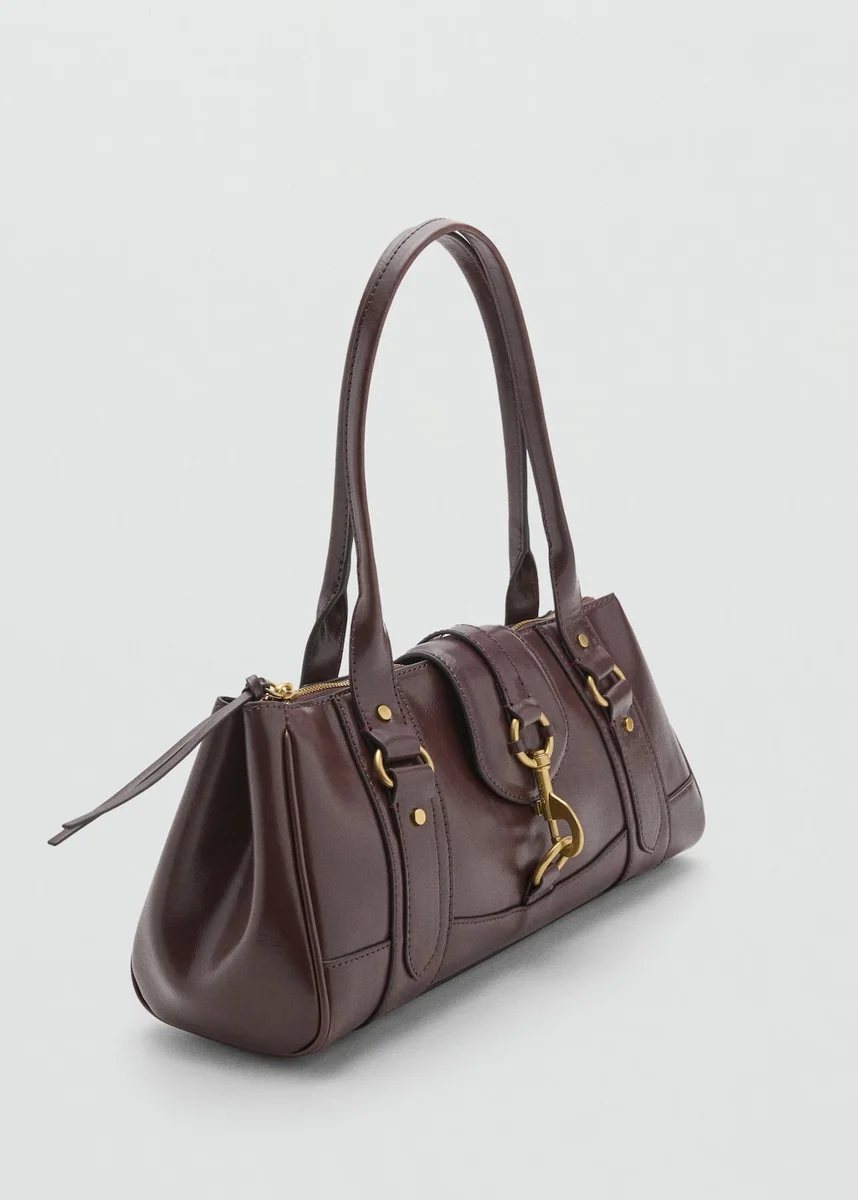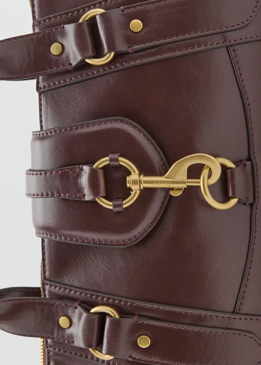 Effetto pelle. Dimensioni medie. Due tracolle. Chiusura con cerniera. Chiusura con moschettone. Fodera interna.