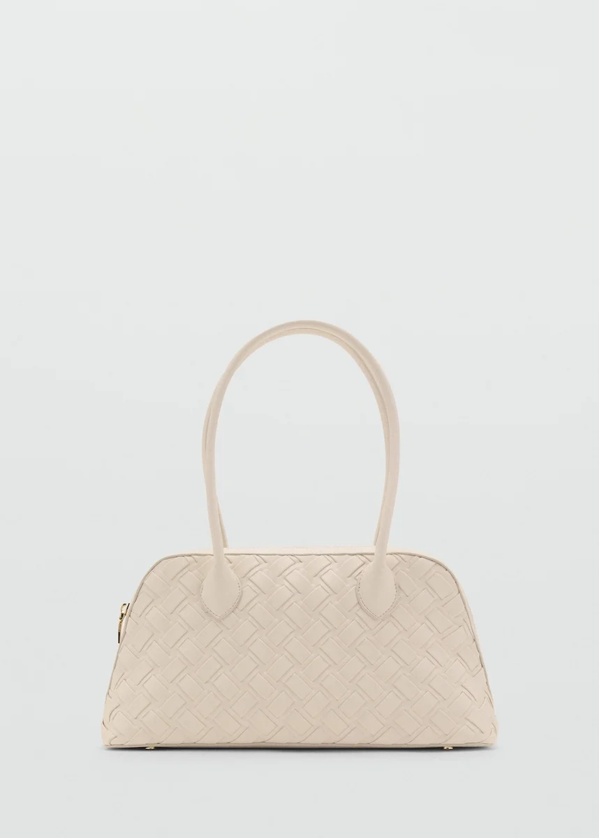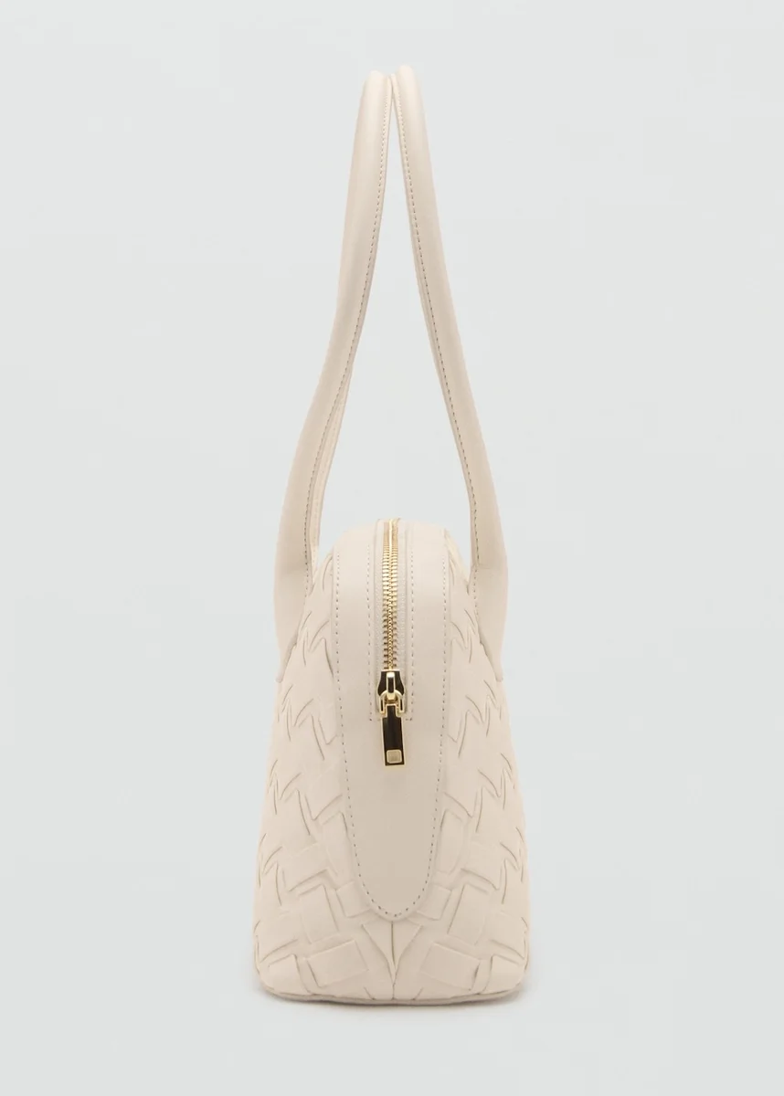 Dimensioni medie. Stile bowling. Design intrecciato. Due spalline. Chiusura con cerniera. Fodera interna. 35 x 17 x 12 cm (lunghezza x altezza x larghezza)