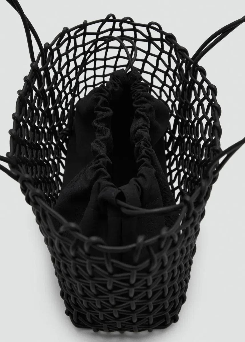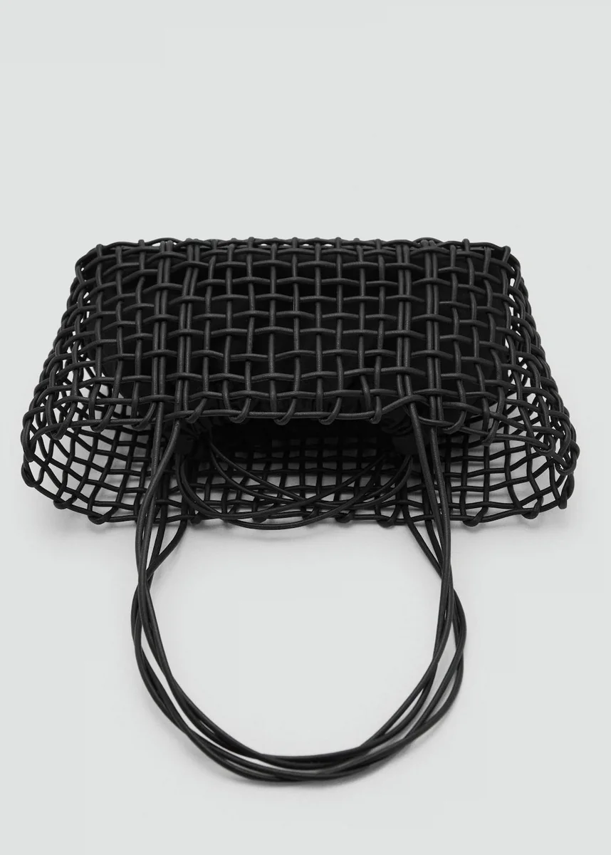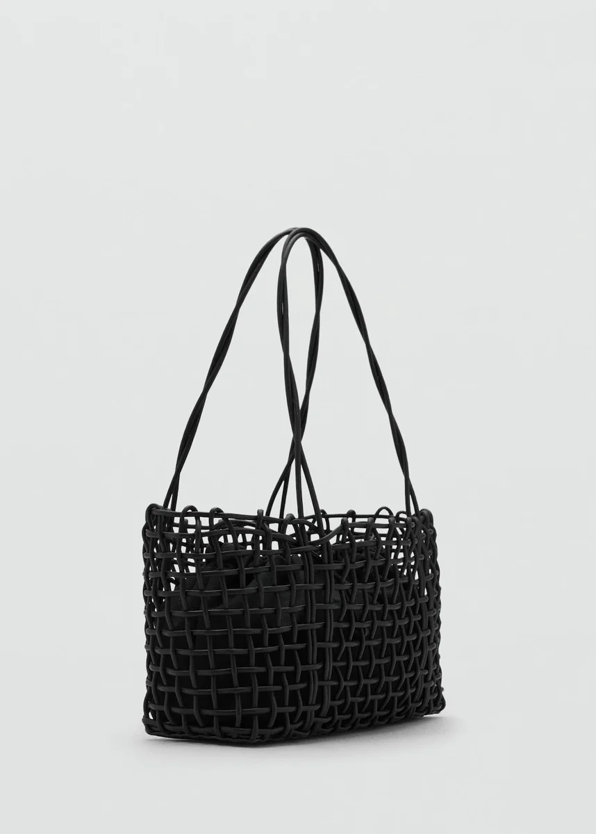 Dimensioni medie. Design intrecciato. Due lunghi manici a tracolla. Tasca interna. Chiusura regolabile.