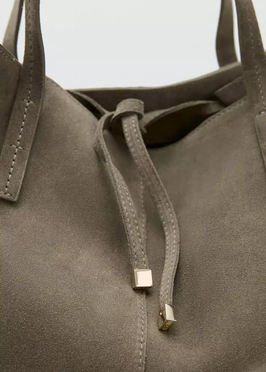 100% pelle bovina. Pelle scamosciata. Dimensioni grandi. Modello shopper. Due tracolle. Tasca interna. Chiusura con lacci. Fodera 100% cotone. Doppio manico. Tracolla.