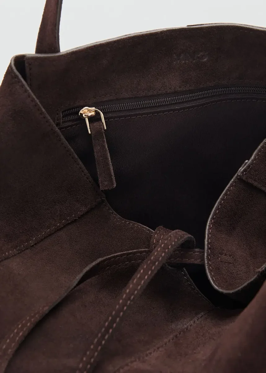 100% pelle bovina. Pelle scamosciata. Dimensioni medie. Due tracolle. Tasca interna con cerniera. Chiusura con bottone magnetico. Fodera 100% cotone. 32 x 32 x 7 cm (lunghezza x altezza x larghezza)