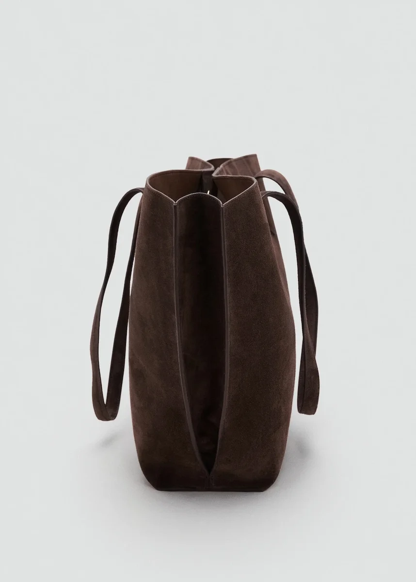 100% pelle bovina. Pelle scamosciata. Dimensioni medie. Modello shopper. Tracolla. Chiusura con bottone magnetico. Fodera interna. Tasca interna. Chiusura con cerniera. Esclusiva online.