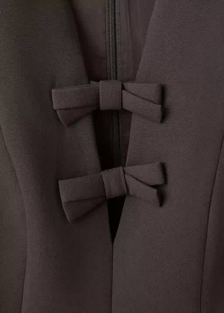 Dal design aderente, questo capo presenta uno scollo a V impreziosito da fiocchi. Con spalline larghe, è completato da una chiusura con zip sul retro. È abbinato a pantaloni coordinati