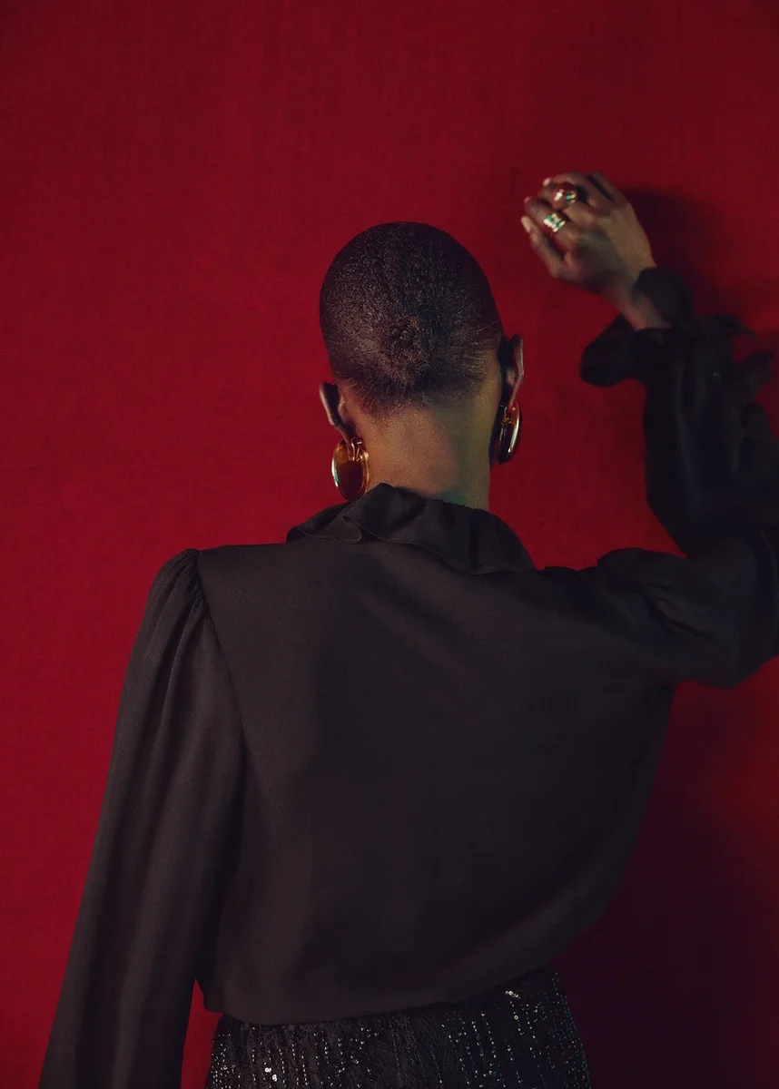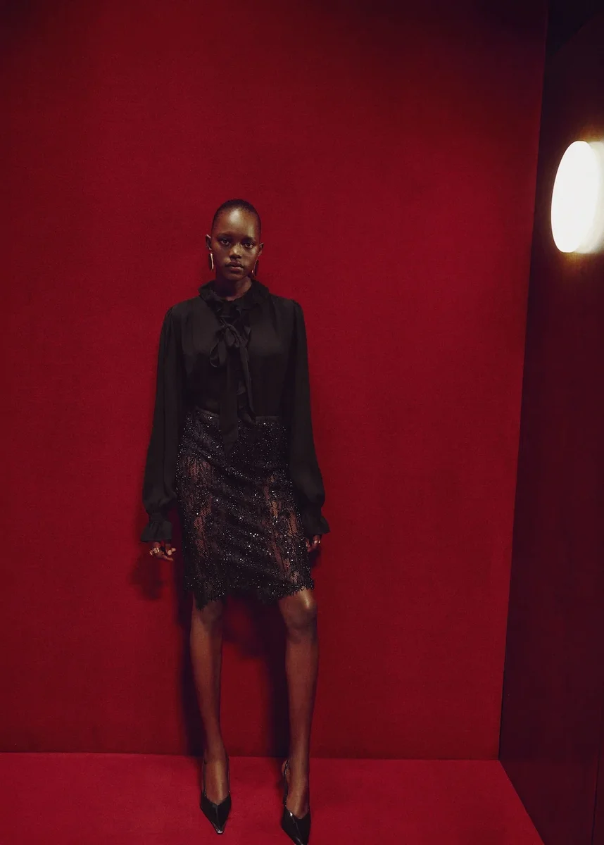 Con un design dritto e volant, questo capo presenta una scollatura rotonda impreziosita da un foulard. Le maniche lunghe hanno polsini con bottoni e la chiusura frontale è completata da bottoni.