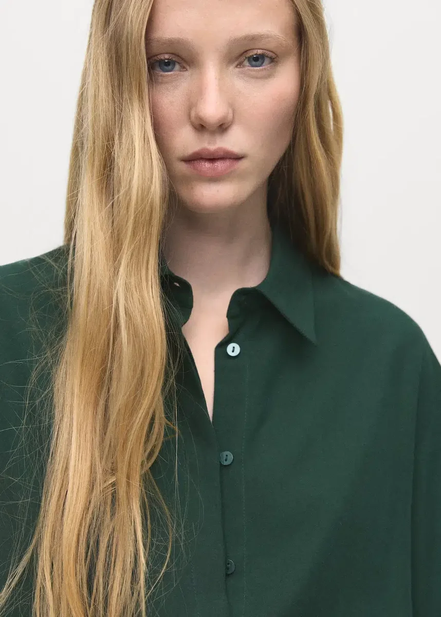 Realizzato in 100% lyocell, questo capo presenta un taglio dritto con collo camicia. Le maniche hanno polsini con bottoni e la chiusura frontale è con bottoni nascosti. Disponibile in taglie forti