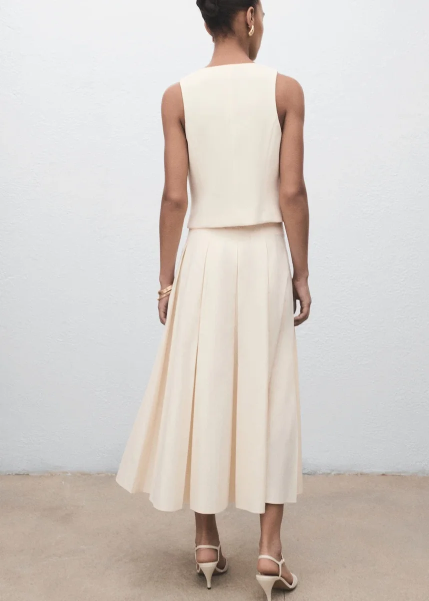 Stile completo. Modello dritto. Scollo rotondo aperto. Senza maniche. Spalline larghe. Chiusura con bottoni sul davanti. Fodera interna. Disponibile in taglie forti. Total look
