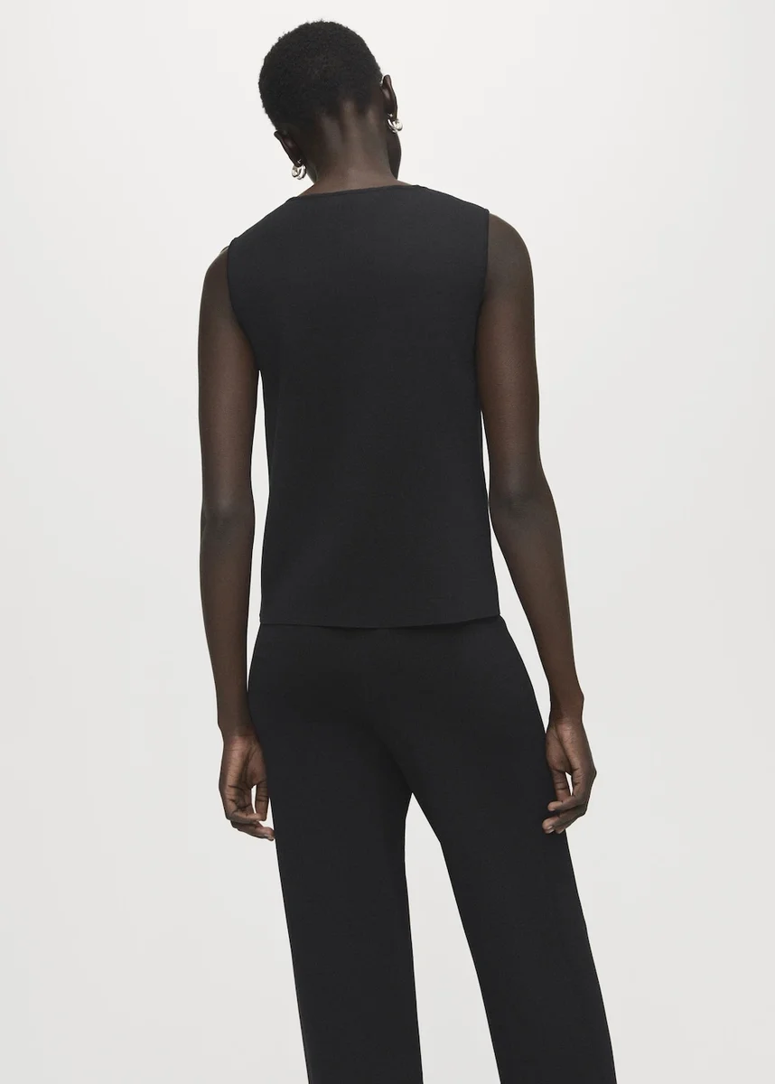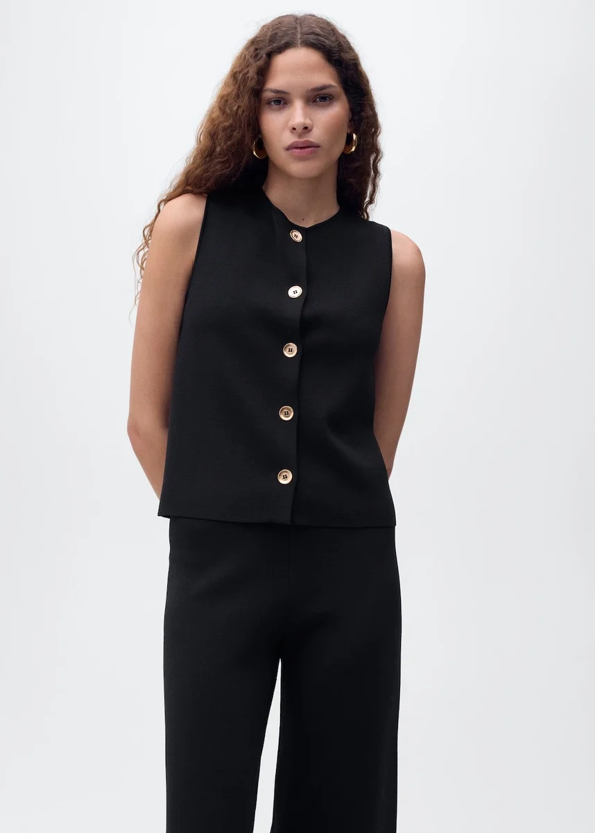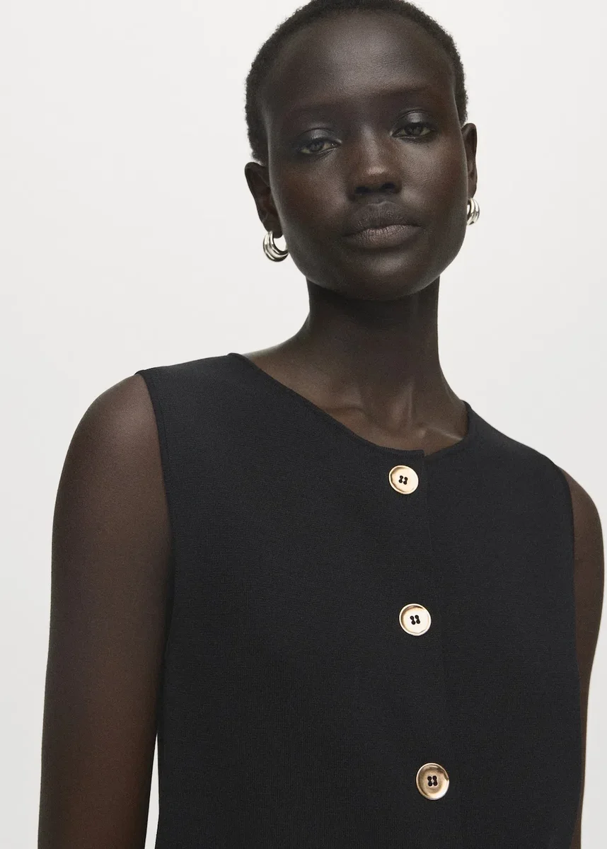 Realizzato in maglia fine, questo modello dritto presenta un collo a scatola e spalline larghe. La chiusura con bottoni sul davanti aggiunge funzionalità e stile all’insieme