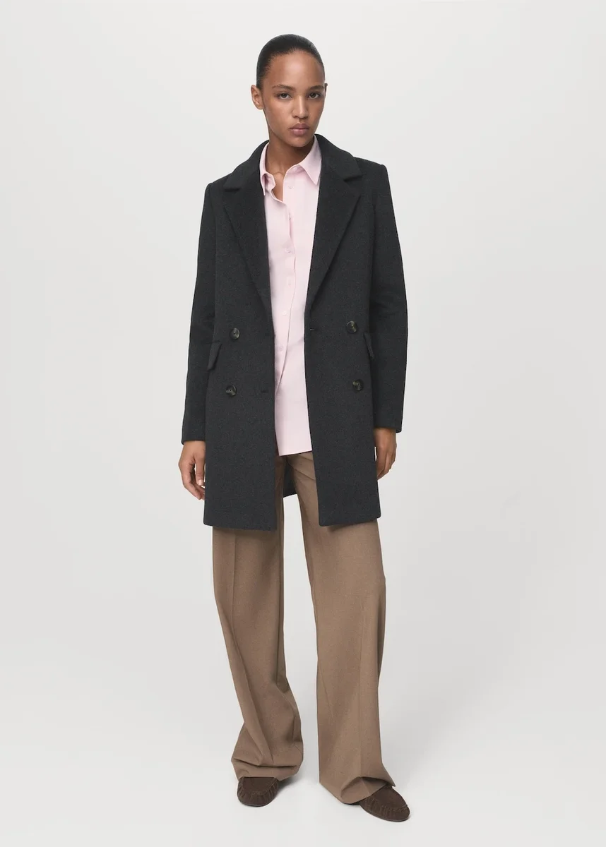 Realizzato in tessuto misto lana, questo cappotto presenta un design dritto con scollo a V e revers classici. Ha maniche lunghe con polsini abbottonati, due tasche con patta e chiusura doppiopetto. Interno foderato. Disponibile in taglie forti. Esclusiva online