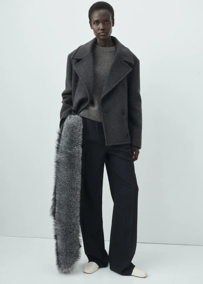 Realizzato in tessuto di lana, questo modello oversize presenta un collo a V con revers a dente. Include maniche lunghe, tasche a filetto e chiusura doppiopetto. Fodera interna. Collezione Selection.