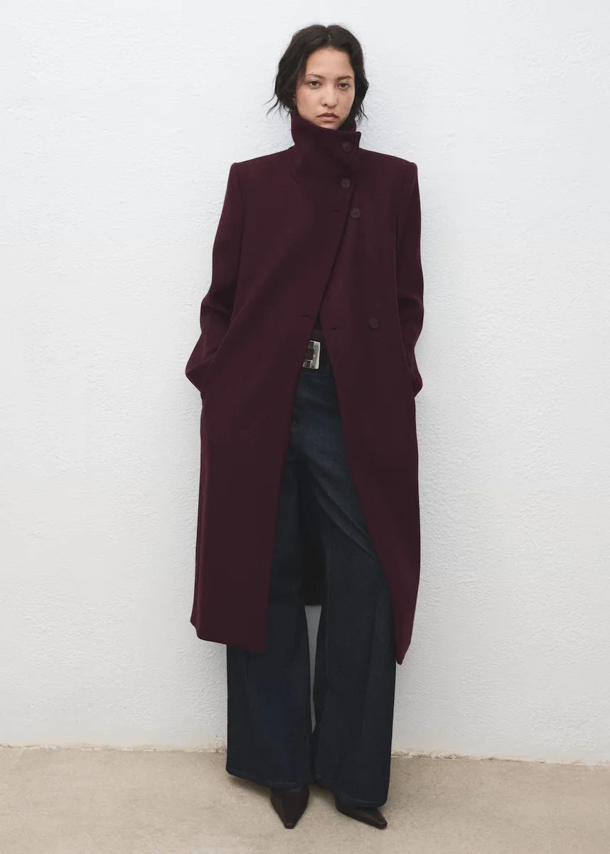 Realizzato in tessuto di lana vergine di Manteco, questo modello lungo e dritto presenta un collo a imbuto con chiusura a bottoni. Ha maniche lunghe, passanti per cintura e cintura in stile accappatoio. Chiusura frontale con bottoni e fodera interna. Disponibile in taglie forti