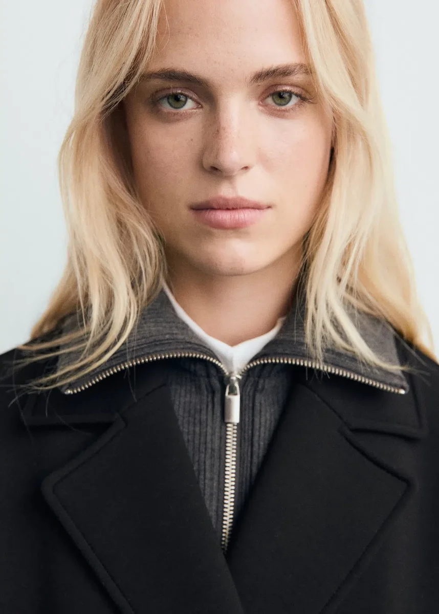 Con un design lungo e dritto, questo cappotto presenta uno stile combinato con collo camicia e maniche lunghe. Ha due tasche laterali e una chiusura doppiopetto, oltre a una fodera interna