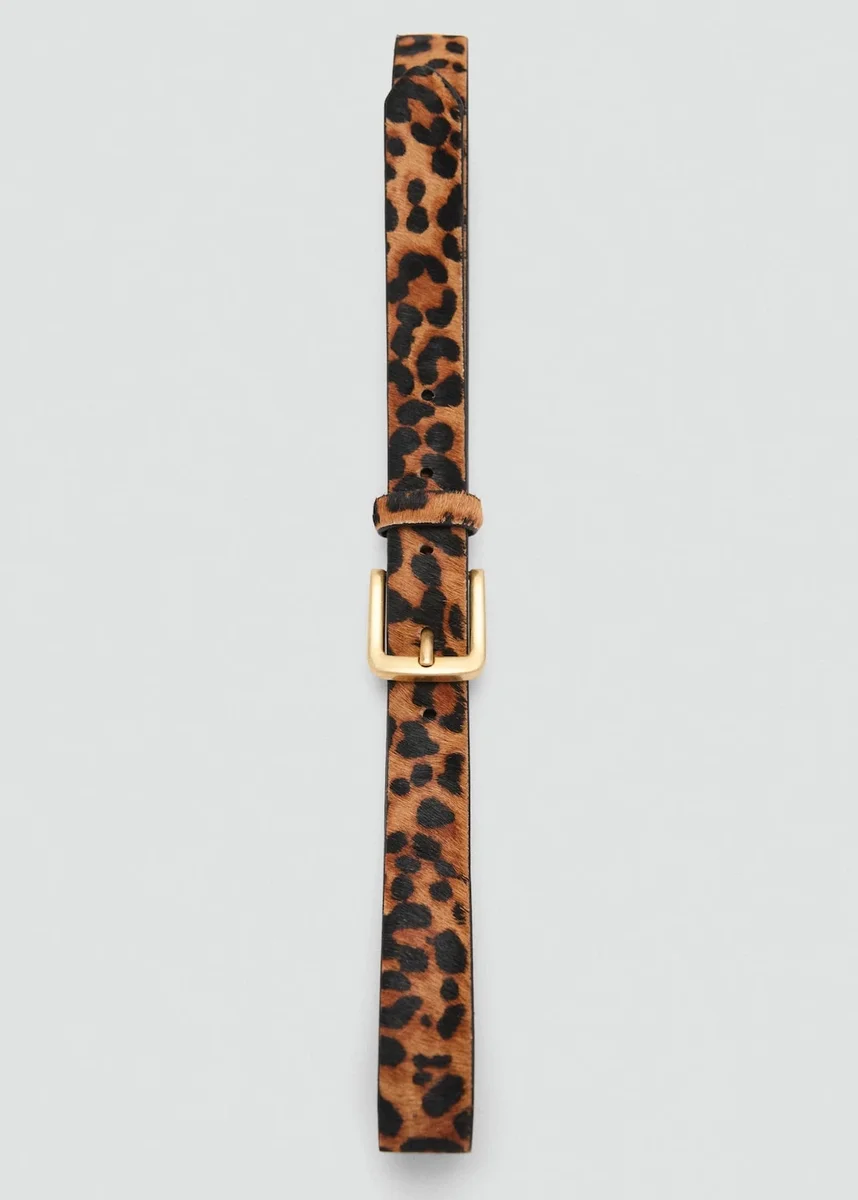 100% pelle bovina con pelo. Stampa animalier. Stampa leopardata. Chiusura con fibbia