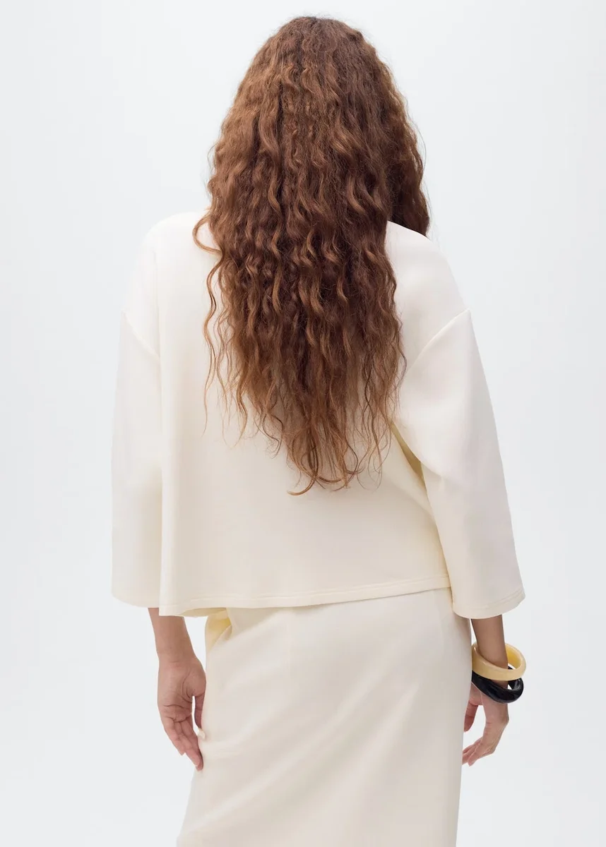 Tessuto in cotone. Modello dritto. Collo con revers. Collo a imbuto. Maniche a tre quarti. Due tasche con patta sul davanti. Dimensioni: 28,5x8x2 cm. Total look.