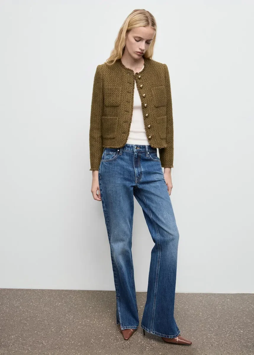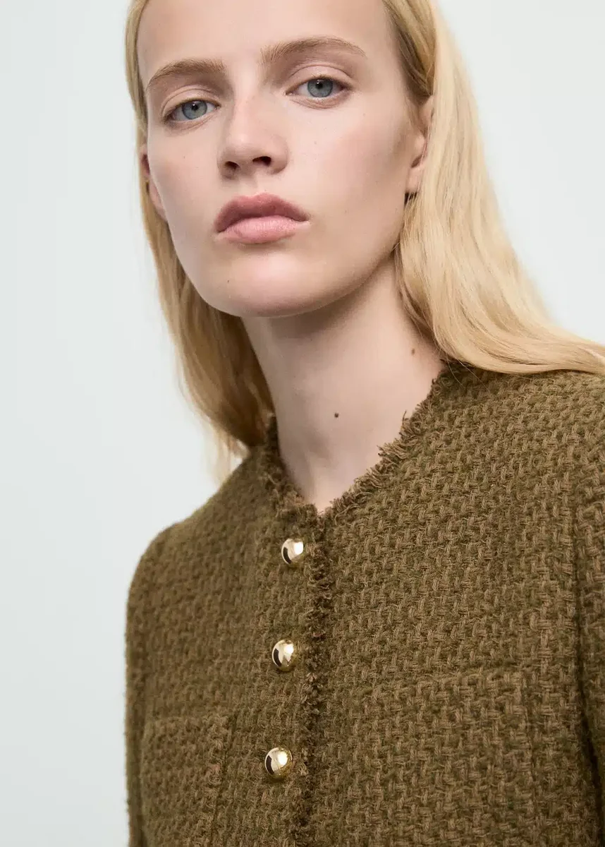 Misto cotone e lana. Tessuto tweed. Modello dritto. Collo rotondo. Maniche lunghe. Polsini con bottoni. Due tasche applicate sul davanti. Chiusura con bottoni sul davanti. Finitura sfrangiata. Solo fodera. Disponibile in taglie forti