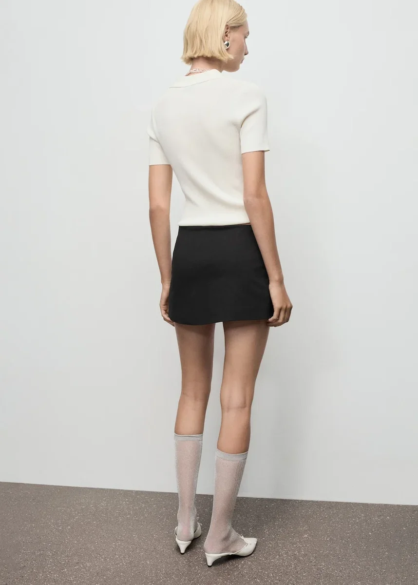 Realizzato in tessuto misto cotone, questo capo presenta un design mini-gonna con vita bassa. Presenta una piega sul davanti e un fiocco decorativo