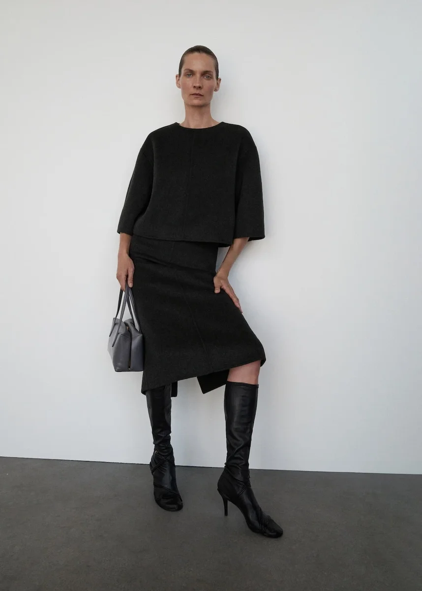Realizzata in tessuto misto lana, questa gonna presenta un taglio dritto e una vita media. Include uno spacco posteriore sull’orlo e una fodera interna. È abbinata a un top coordinato per creare un total look. Collezione Selection