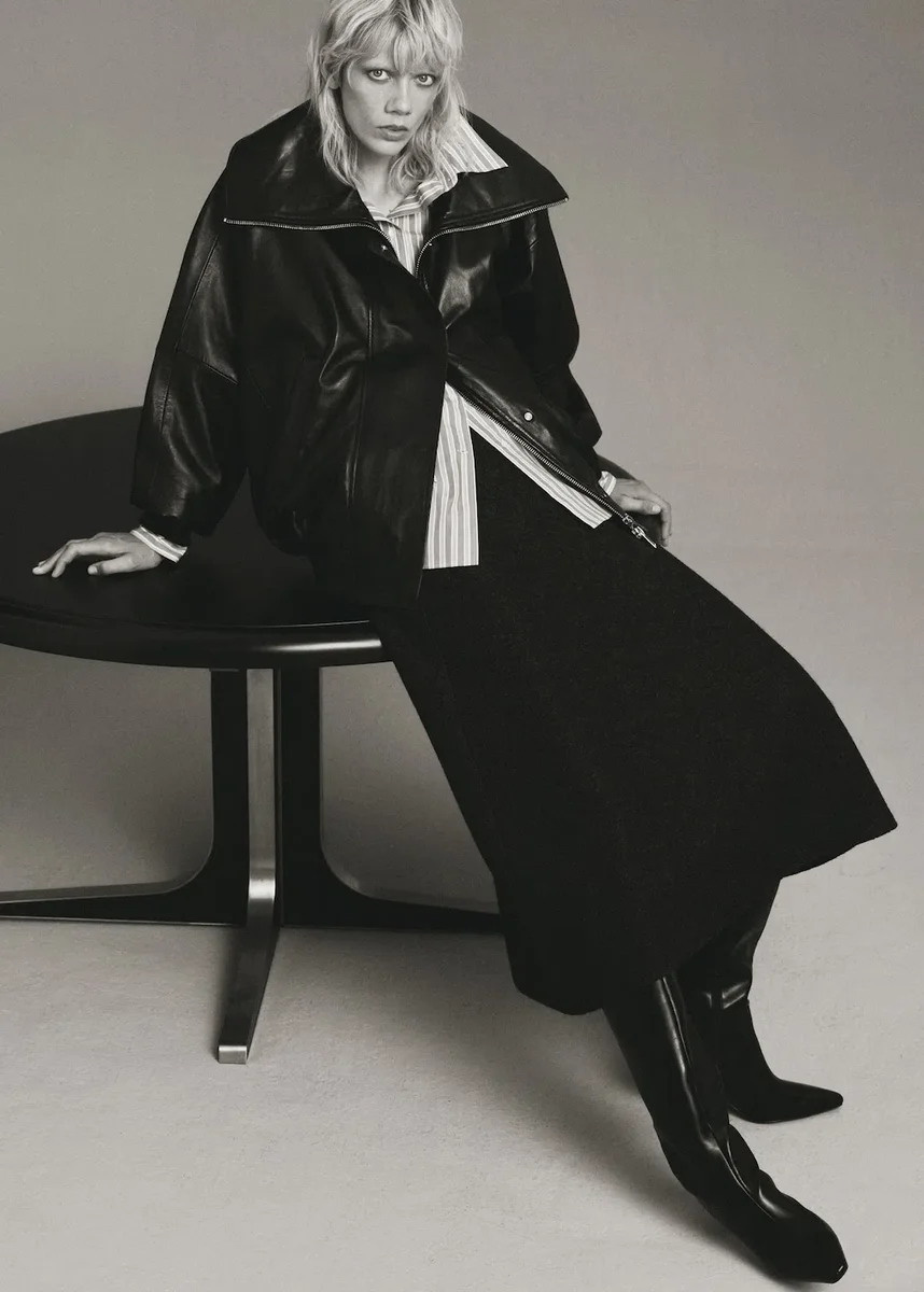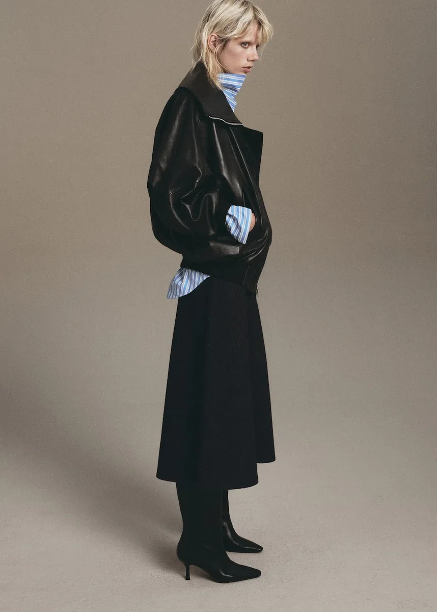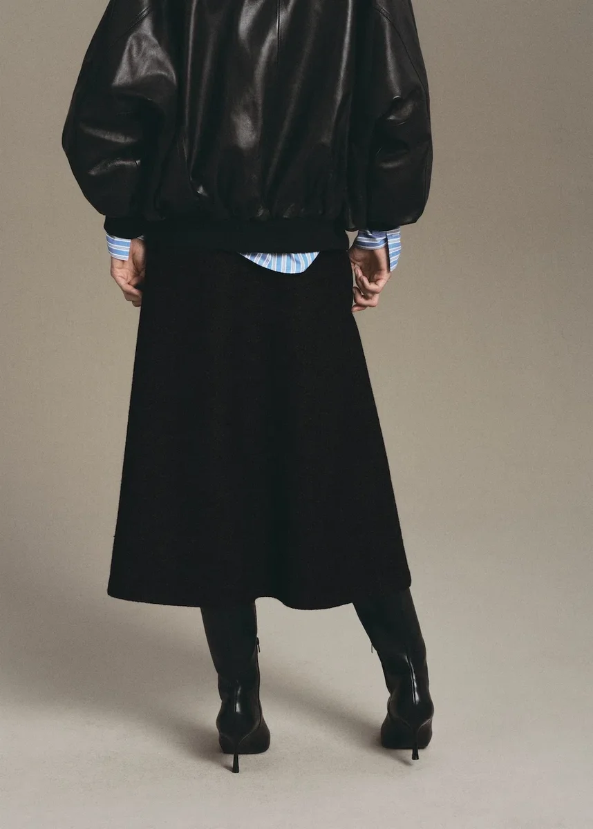 Tessuto misto lana. Modello midi. Modello svasato. Elastico in vita.