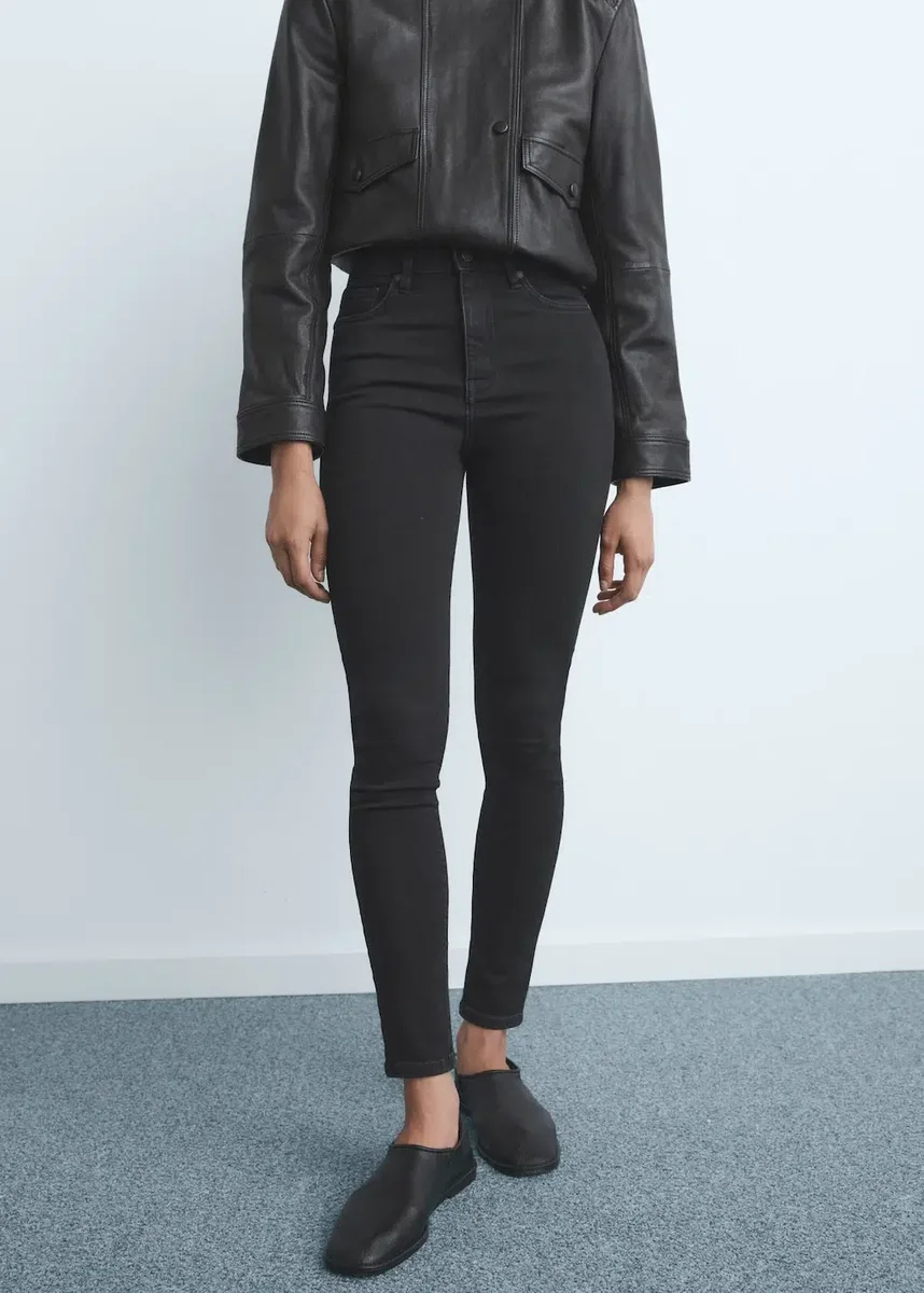 Tessuto denim di cotone. Modello lungo. Vestibilità skinny. Vestibilità slim. Vita alta. Passanti per cintura. Cinque tasche. Chiusura frontale con cerniera e bottoni. Disponibile in taglie forti. Design aderente. Chiusura frontale con cerniera e bottoni. Lunghezza interna gamba 68 cm.