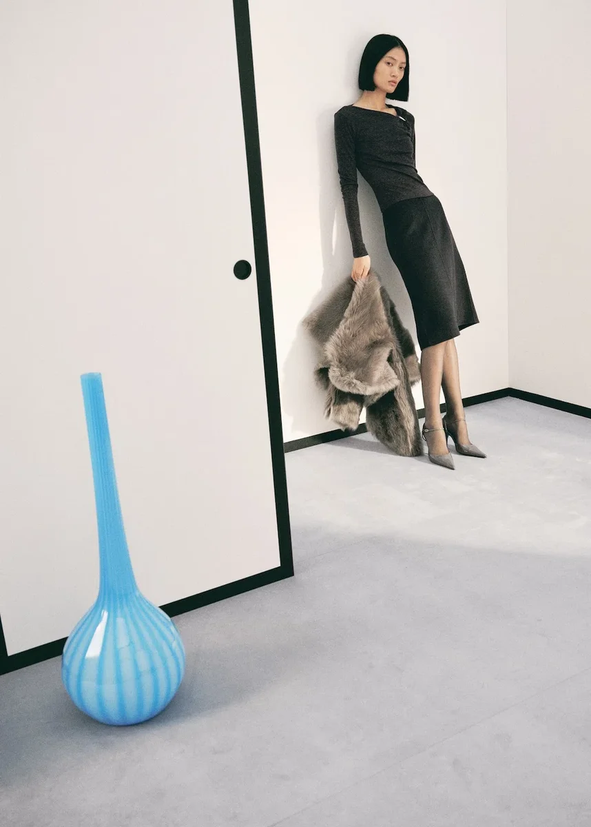 Design aderente. Scollo asimmetrico. Dettagli con anelli metallici. Maniche lunghe. Disponibile in taglie forti.