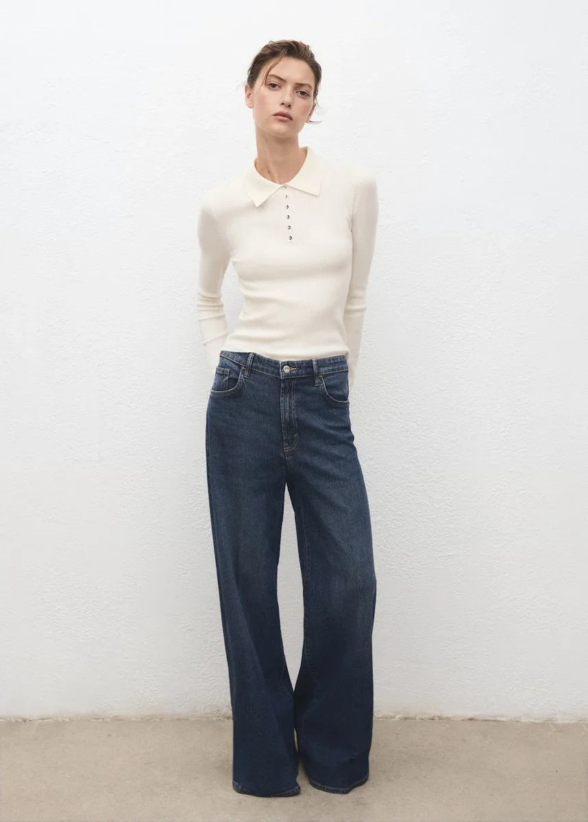Realizzato in tessuto misto lana, questo maglione presenta un design a maglia fine con lavorazione a coste. La sua vestibilità sartoriale è completata da un collo alto con chiusura a bottoni e maniche lunghe