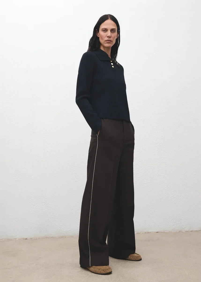 Realizzato in maglia a coste, questo modello dritto presenta un collo alto con chiusura a bottoni e bottoni decorativi. Le maniche lunghe lo rendono versatile. Disponibile in taglie forti