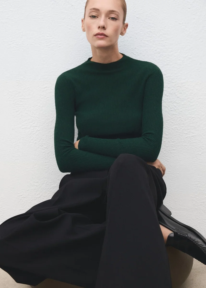 Realizzato in maglia a costine, questo modello aderente presenta un collo Perkins e maniche lunghe