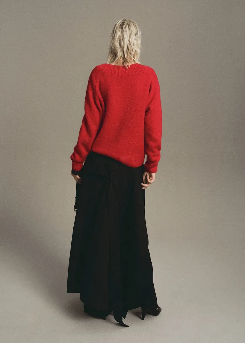 Tessuto a maglia grossa. Modello dritto. Scollo a V. Maniche lunghe.
