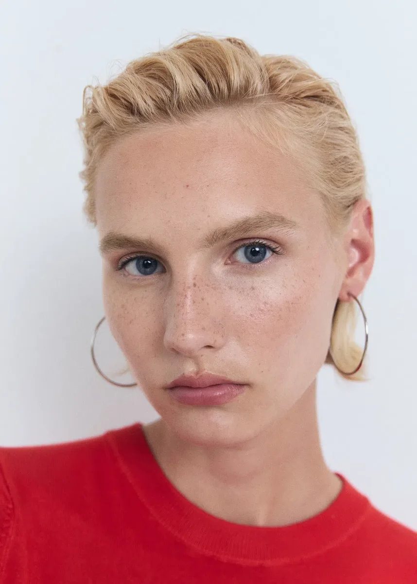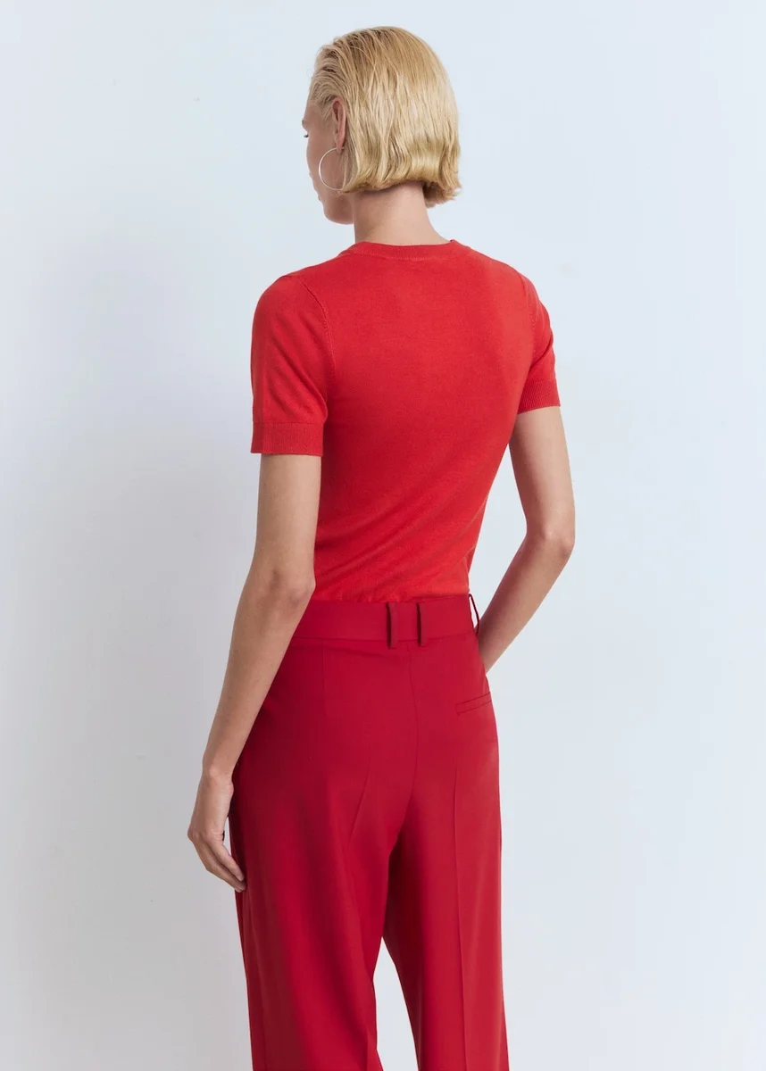 Tessuto a maglia fine. Design dritto. Collo rotondo. Maniche corte. Senza chiusura. Disponibile in taglie forti. Design aderente. Senza chiusura. Lunghezza standard. Silhouette slim. Collo con revers rotondo. Struttura a maglia fine. Maniche corte.