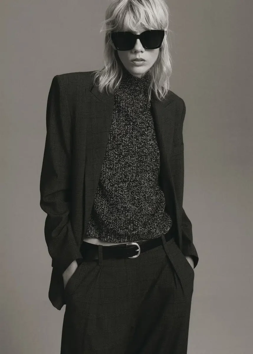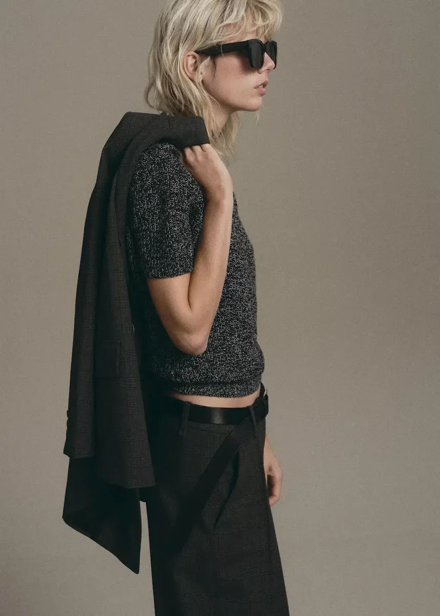 Maglia lavorata a maglia screziata. Modello dritto. Collo alto. Maniche corte