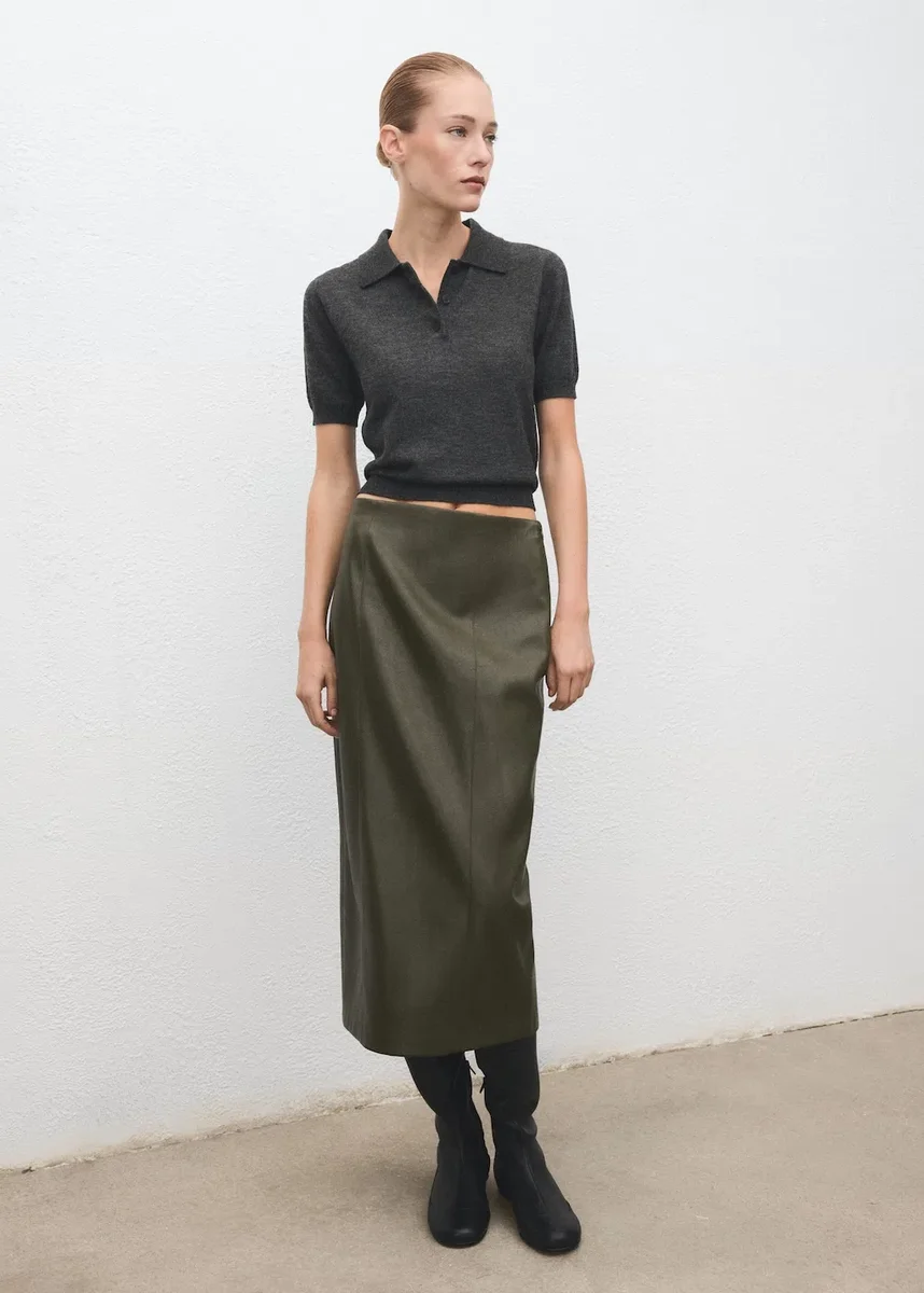 Realizzato in maglia fine, questo modello dritto presenta un collo alto con chiusura a bottoni e maniche corte