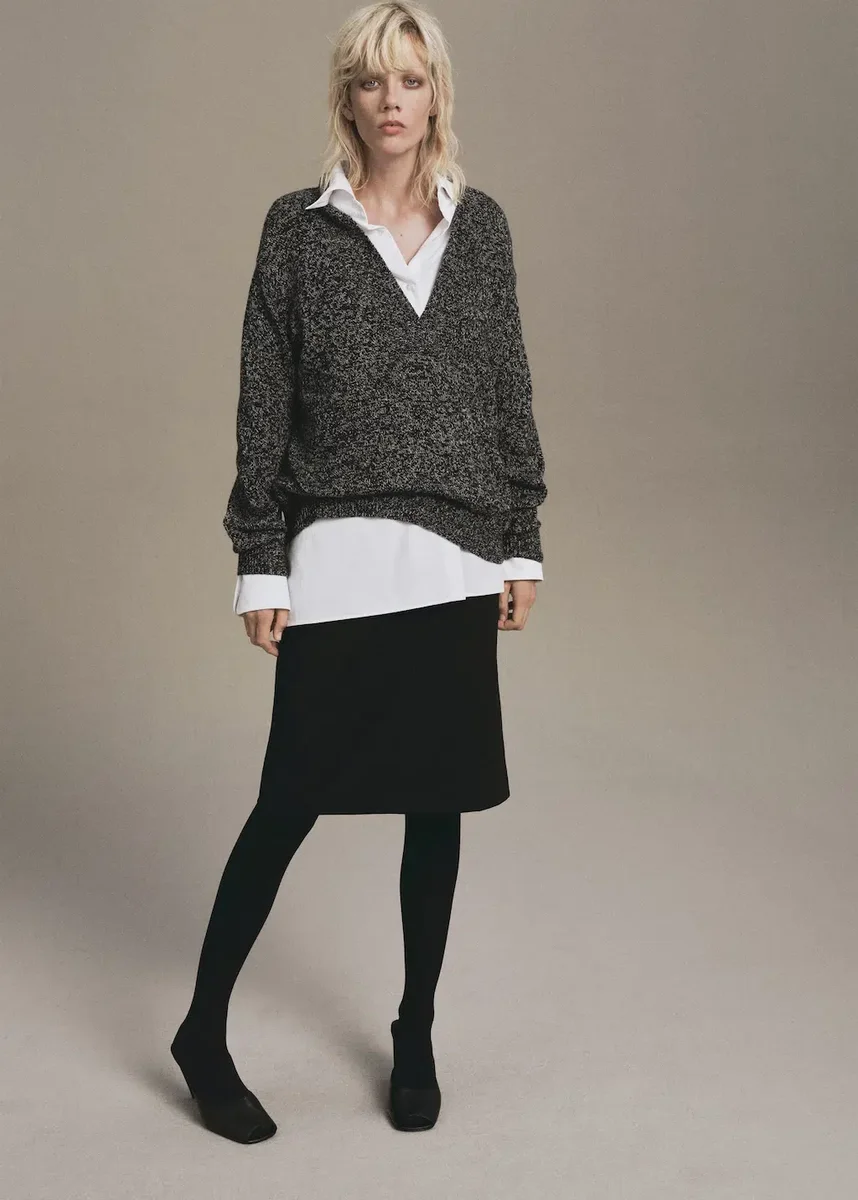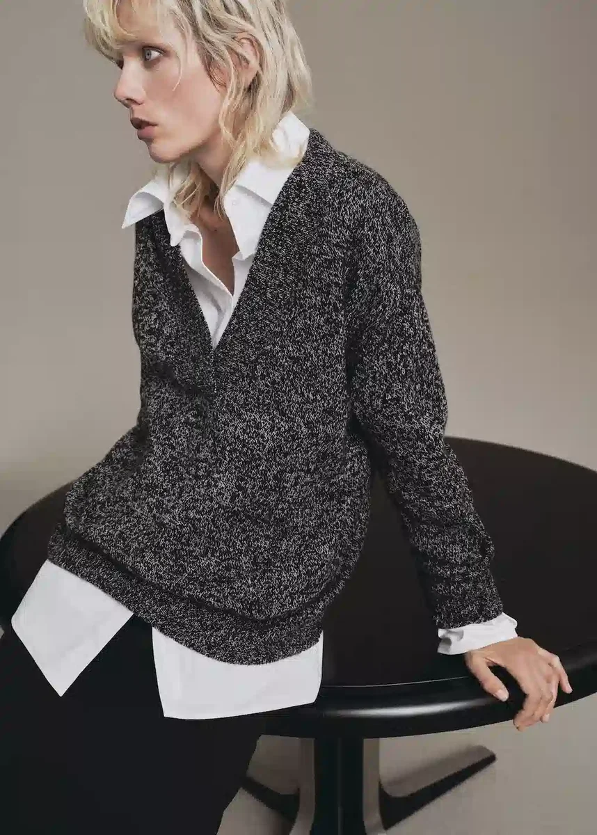 Maglia screziata. Modello dritto. Scollo a V. Maniche lunghe.