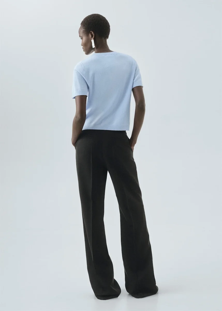 Realizzato in maglia di lana a trama fine, questo modello dritto presenta scollo rotondo e maniche corte. Senza chiusura. Collezione Selection