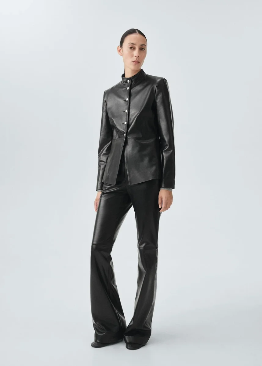 100% pelle ovina. Modello lungo. Design svasato. Vita media. Due tasche laterali. Chiusura con bottone nascosto, gancio e zip. Fodera interna. Total look. Collezione Selection. Esclusiva online.