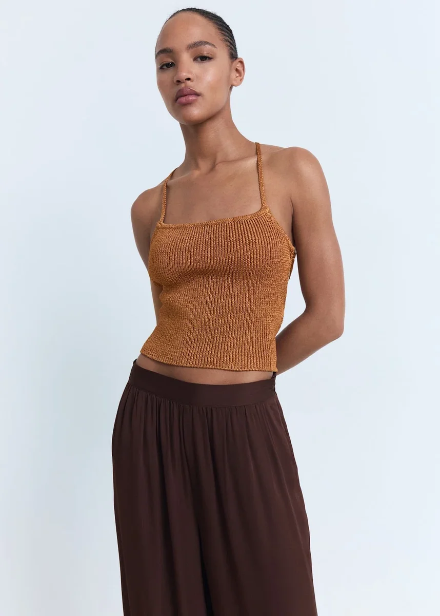 Tessuto elasticizzato. Orlo a palloncino. Due tasche laterali. Orlo a palloncino. Dettaglio fiocco sull’orlo. Senza chiusura
