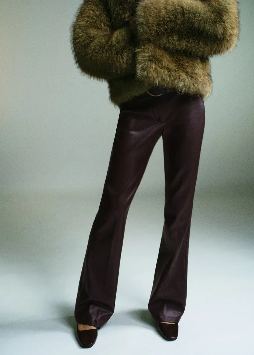 Effetto pelle. Modello lungo. Vestibilità aderente. Modello svasato. Vita bassa. Chiusura con gancio e zip. Il colore verde è un’esclusiva online.
