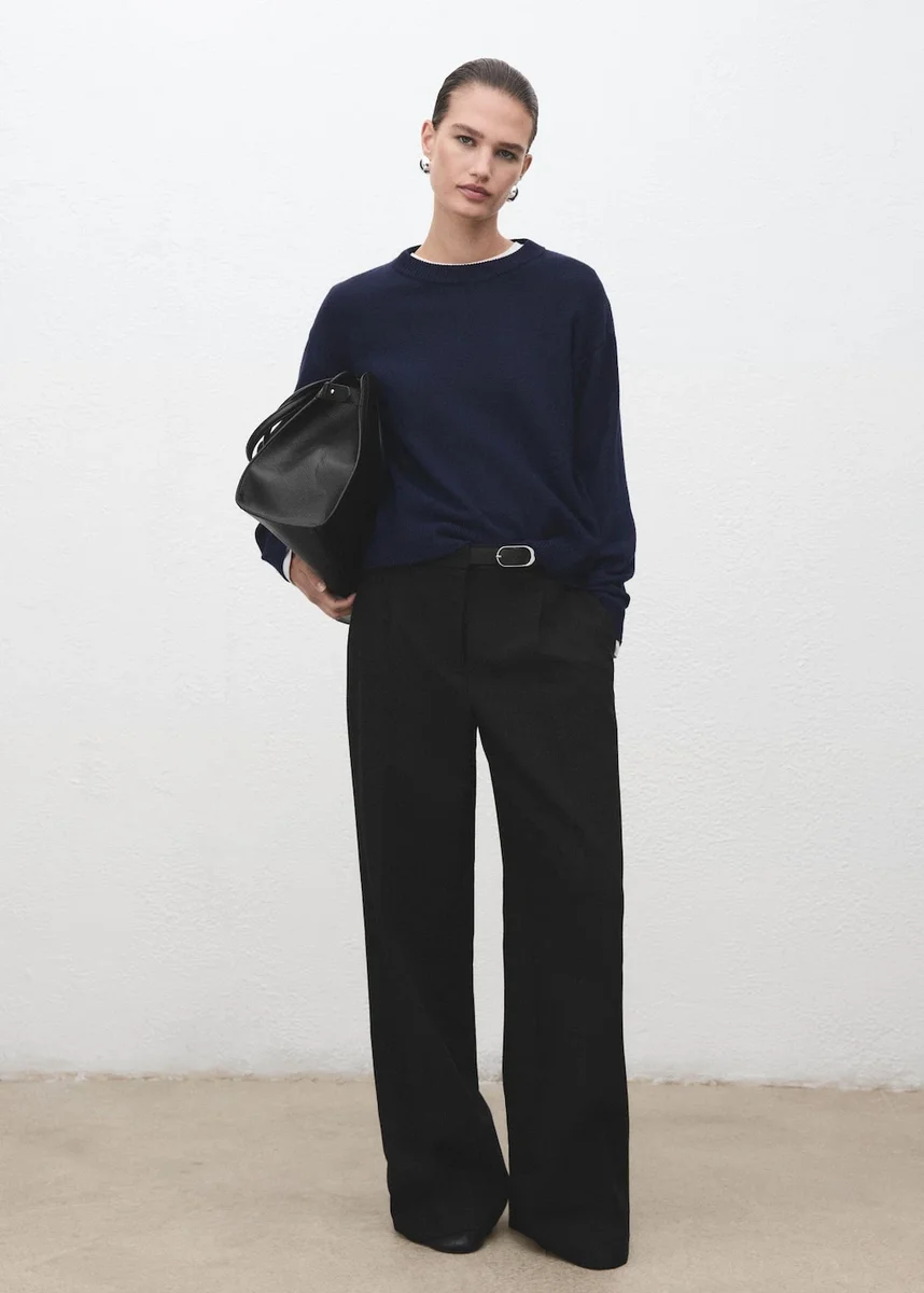 Modello lungo. Modello dritto. Vita media. Cintura decorativa. Due tasche laterali. Dettaglio pinces. Chiusura con bottone nascosto, gancio e zip