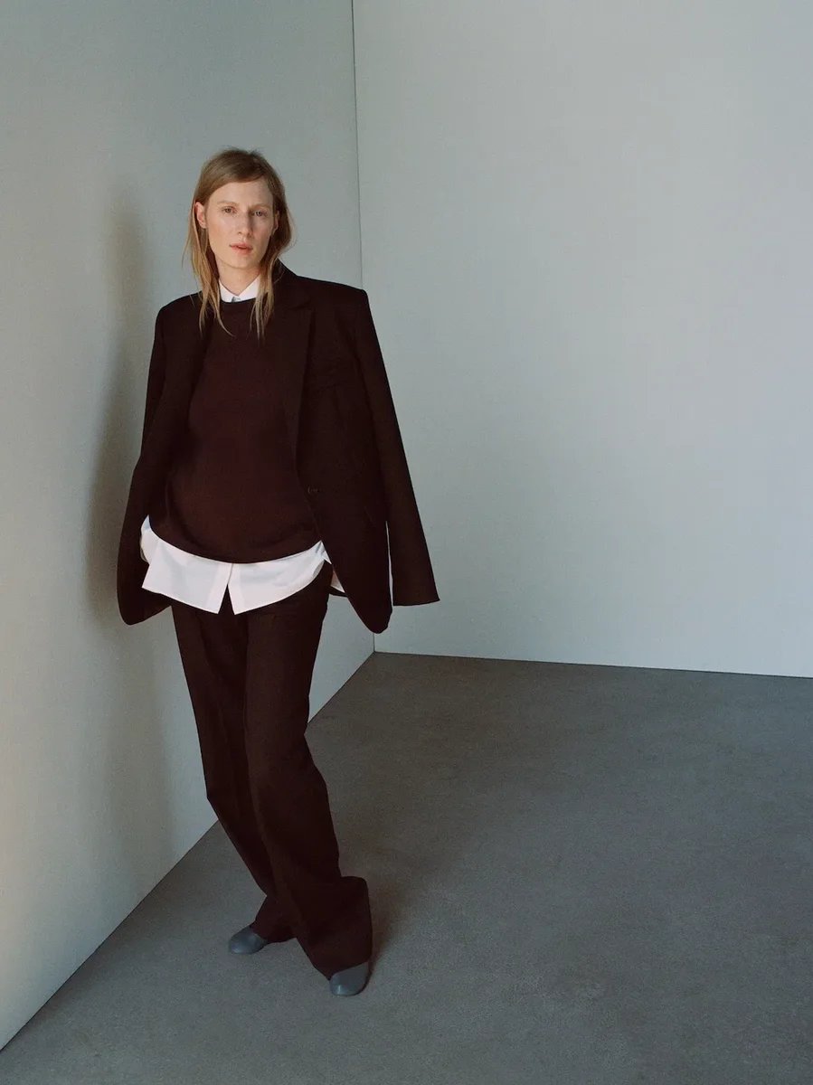 Tessuto 100% lana. Modello lungo. Taglio dritto. Vita media. Passanti per cintura. Due tasche laterali. Due tasche a filetto sul retro. Chiusura frontale con bottone nascosto, gancio e cerniera con abbottonatura. Fodera interna. Total look. Collezione Selection.
