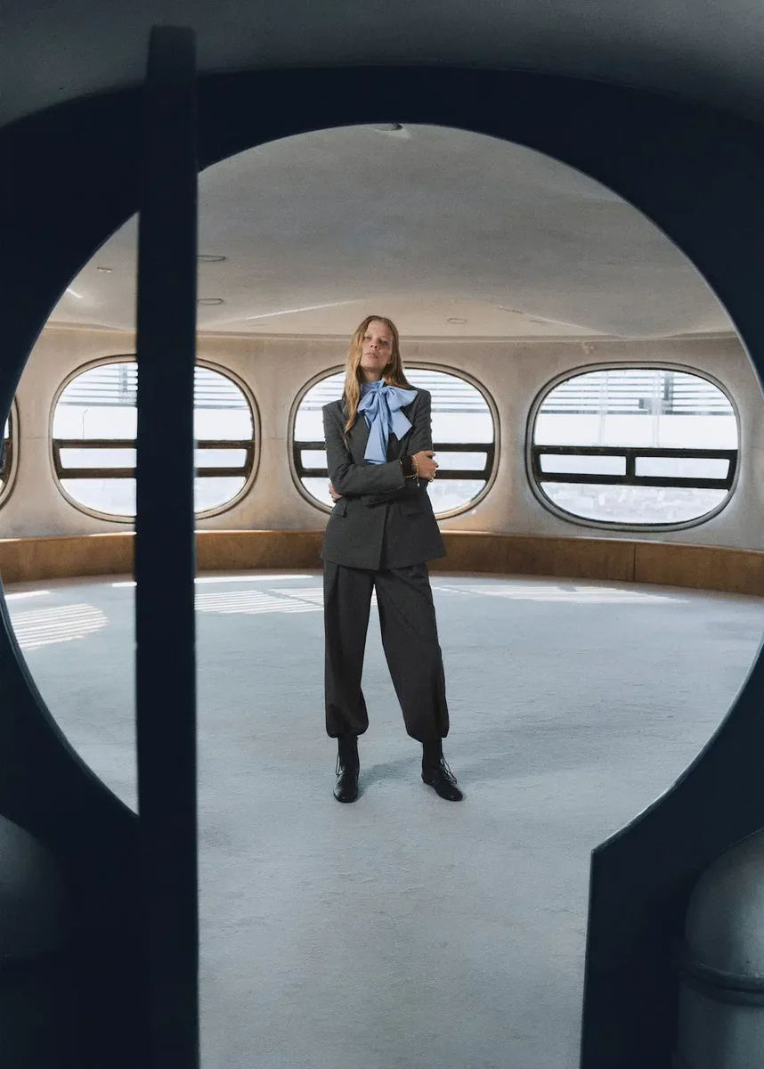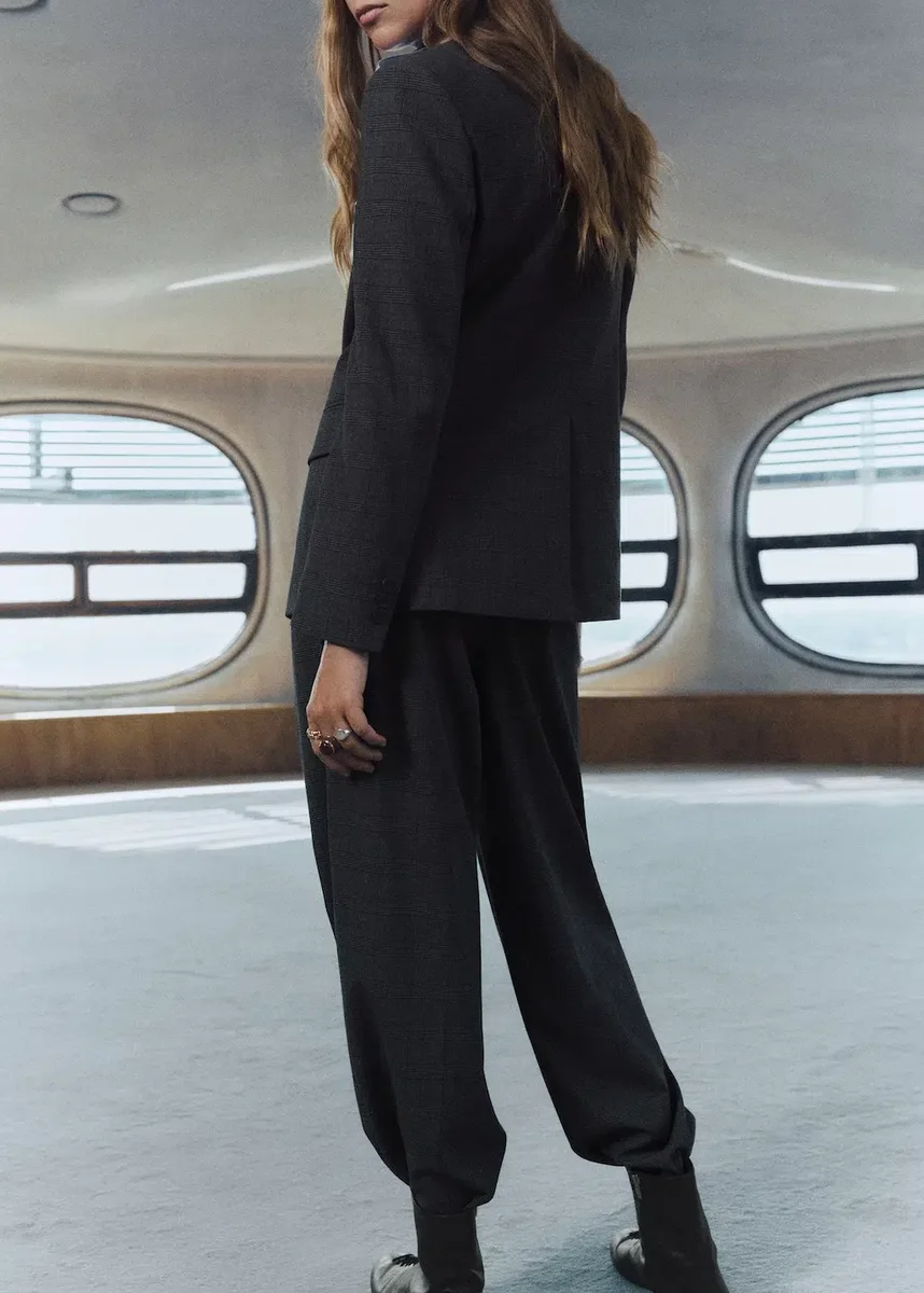 Modello da completo. Design lungo. Design dritto. Design a quadri. Vita media. Passanti per cintura. Dettaglio pinces. Due tasche laterali. Chiusura con zip, bottone e chiusura a strappo nascosta con pattina. Fodera interna. Total look