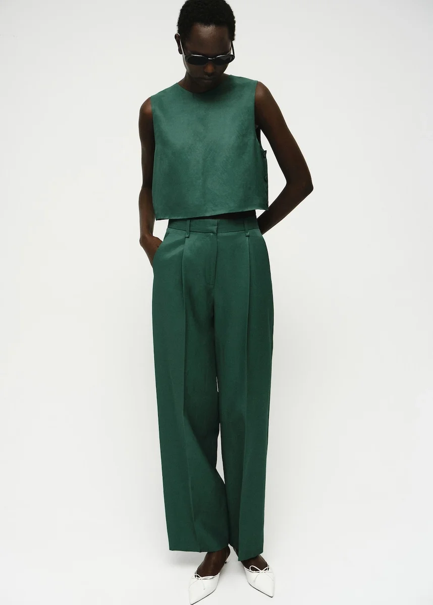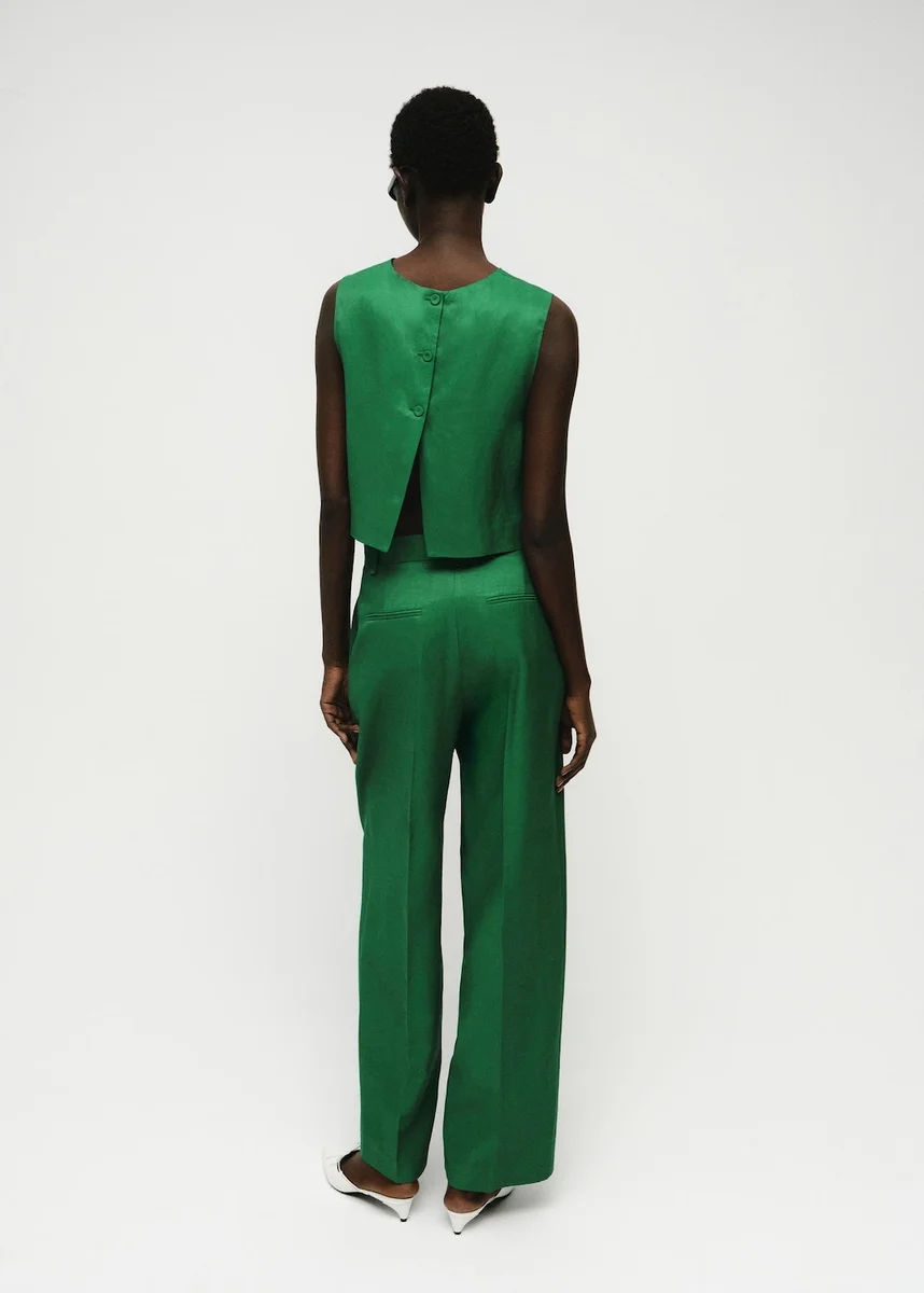 Tessuto misto lino. Tessuto satinato. Modello lungo. Modello dritto. Vita media. Passanti per cintura. Due tasche laterali. Due tasche a filetto sul retro. Dettaglio piega sul davanti. Chiusura con bottone, gancio e zip nascosti. Fodera interna. Total look. Questo capo fa parte della nostra collezione evento, pensata per renderti l’ospite perfetto a qualsiasi festa, matrimonio o cerimonia.