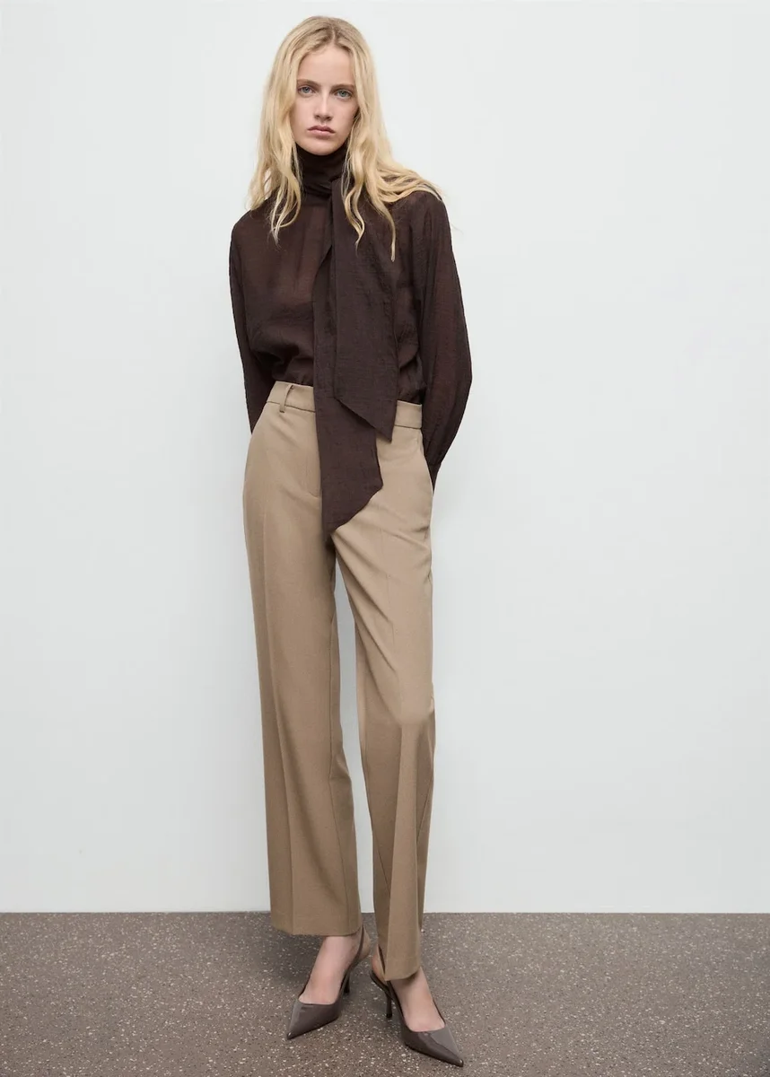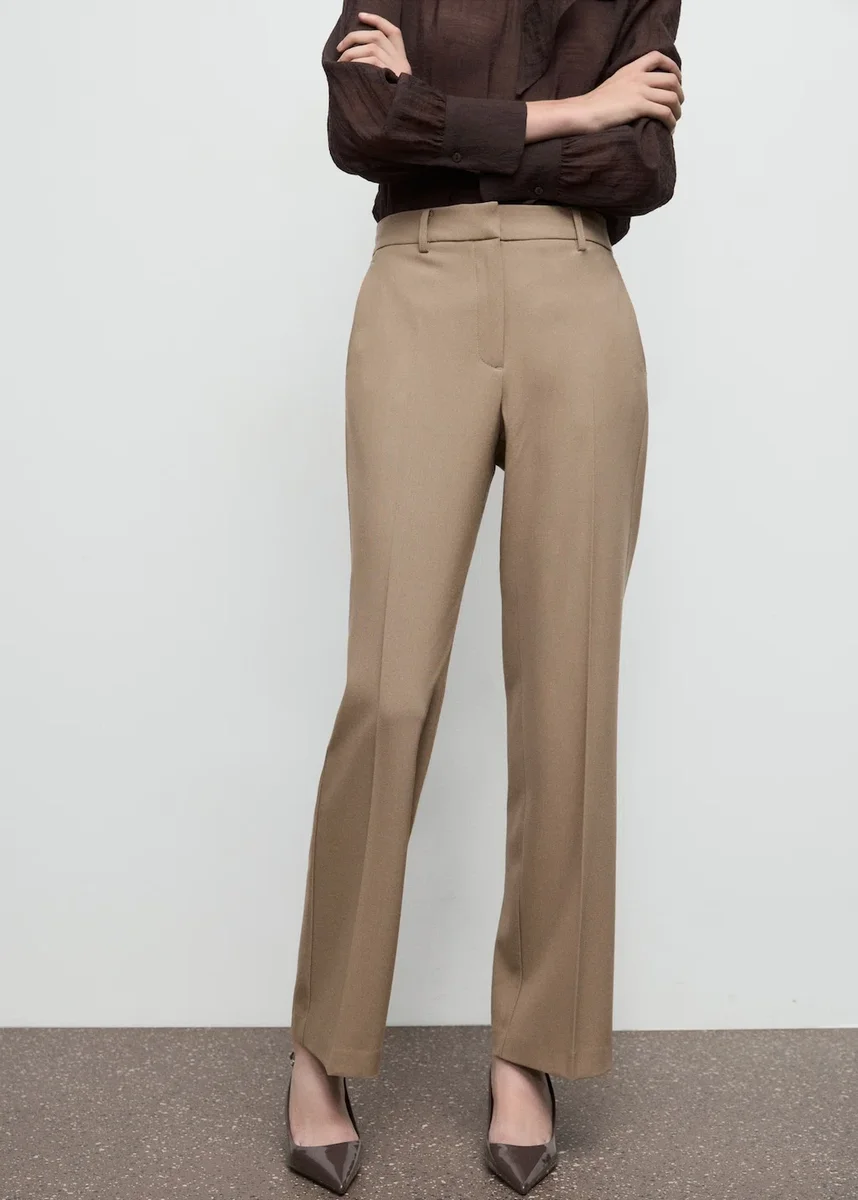 Tessuto leggero. Modello dritto. Modello lungo. Vita media. Due tasche laterali. Chiusura con zip, bottone e gancio e anello nascosti con abbottonatura. Passanti per cintura. Fodera interna.