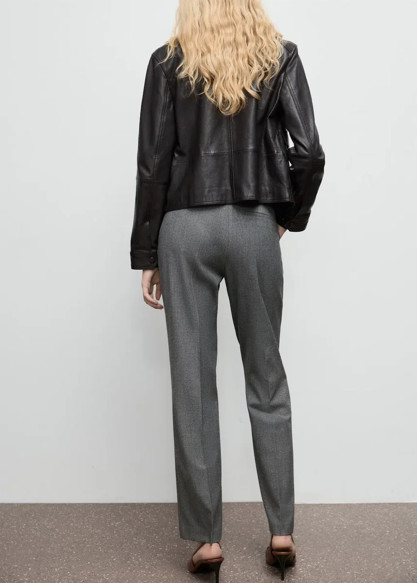 Tessuto leggero. Modello dritto. Modello lungo. Vita media. Due tasche laterali. Chiusura con zip, bottone e gancio e anello nascosti con abbottonatura. Passanti per cintura. Fodera interna.