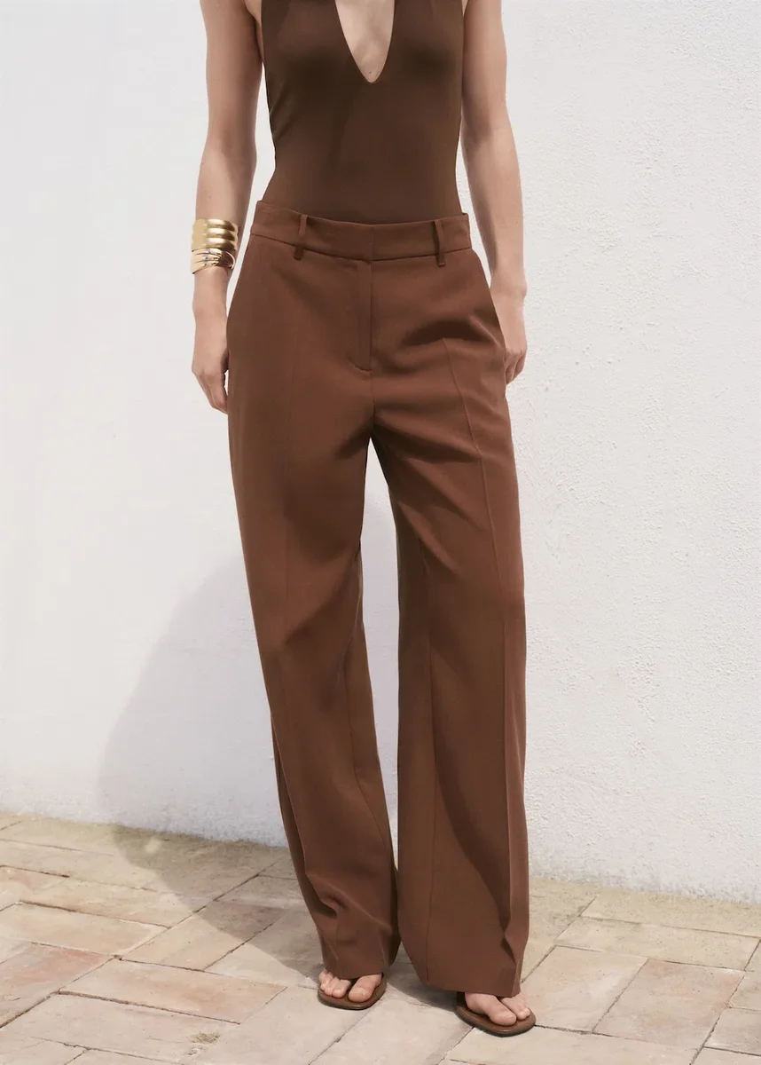 Modello lungo. Modello dritto. Vita media. Passanti per cintura. Due tasche laterali. Chiusura con bottone, gancio e zip nascosti. Fodera interna. Disponibile in taglie forti