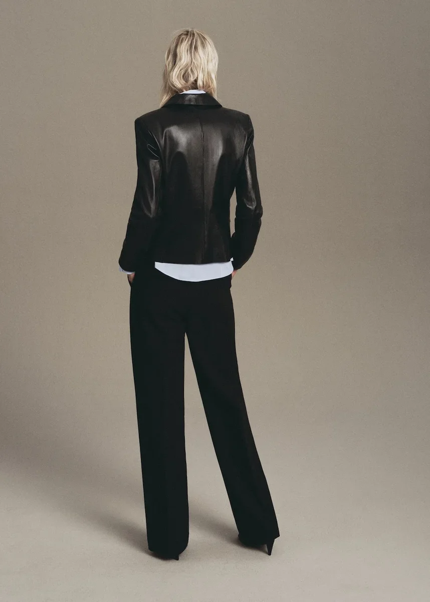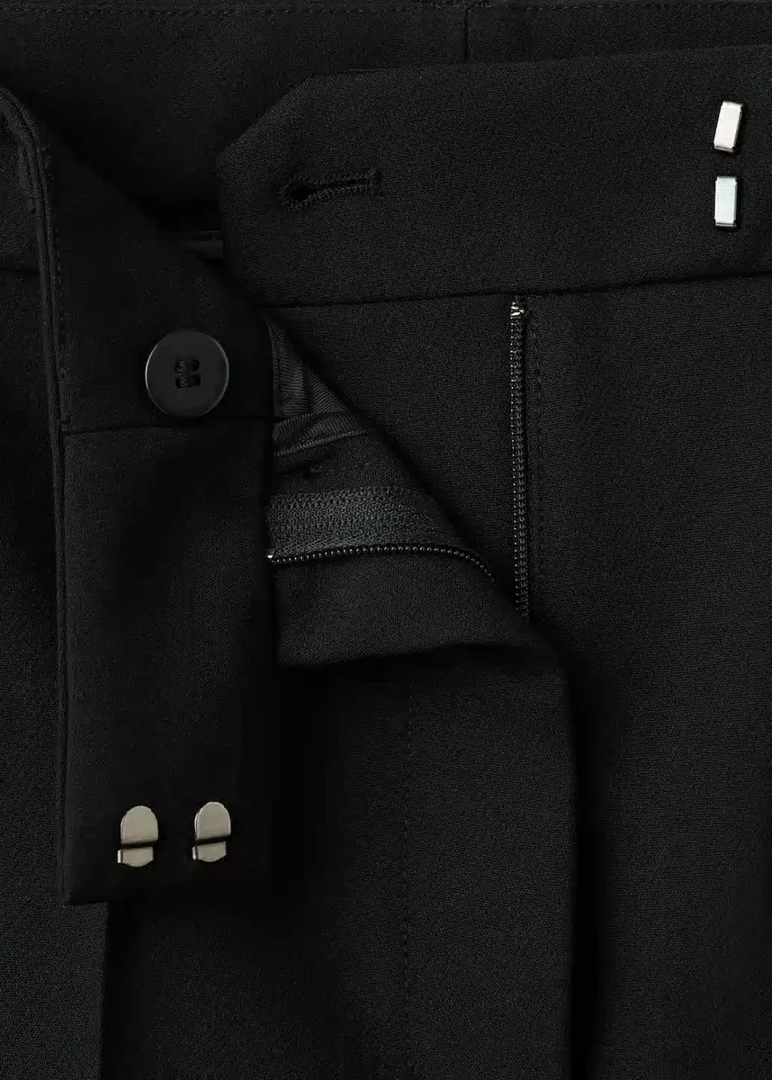 Modello lungo. Modello dritto. Vita media. Passanti per cintura. Due tasche laterali. Cuciture decorative. Chiusura frontale con bottoni nascosti, ganci e cerniera con abbottonatura. Fodera interna.